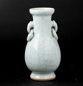 Vaso in porcellana Guan con anse ad anello e mascheroni, Cina, Dinastia Qing, XIX [..]