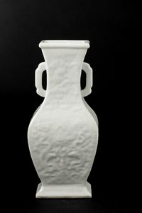 Vaso in porcellana monocroma bianca a doppia ansa con decori a rilievo, Cina, Dinastia [..]