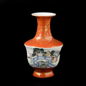 Piccolo vaso in porcellana con figure di fanciulli e decori floreali in color oro [..]