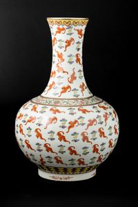 Vaso a bottiglia in porcellana con decoro di pipistrelli, Cina, XX secolo