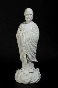 Figura di saggio stante in porcellana Blanc de Chine Dehua, Cina, Dinastia Qing, [..]