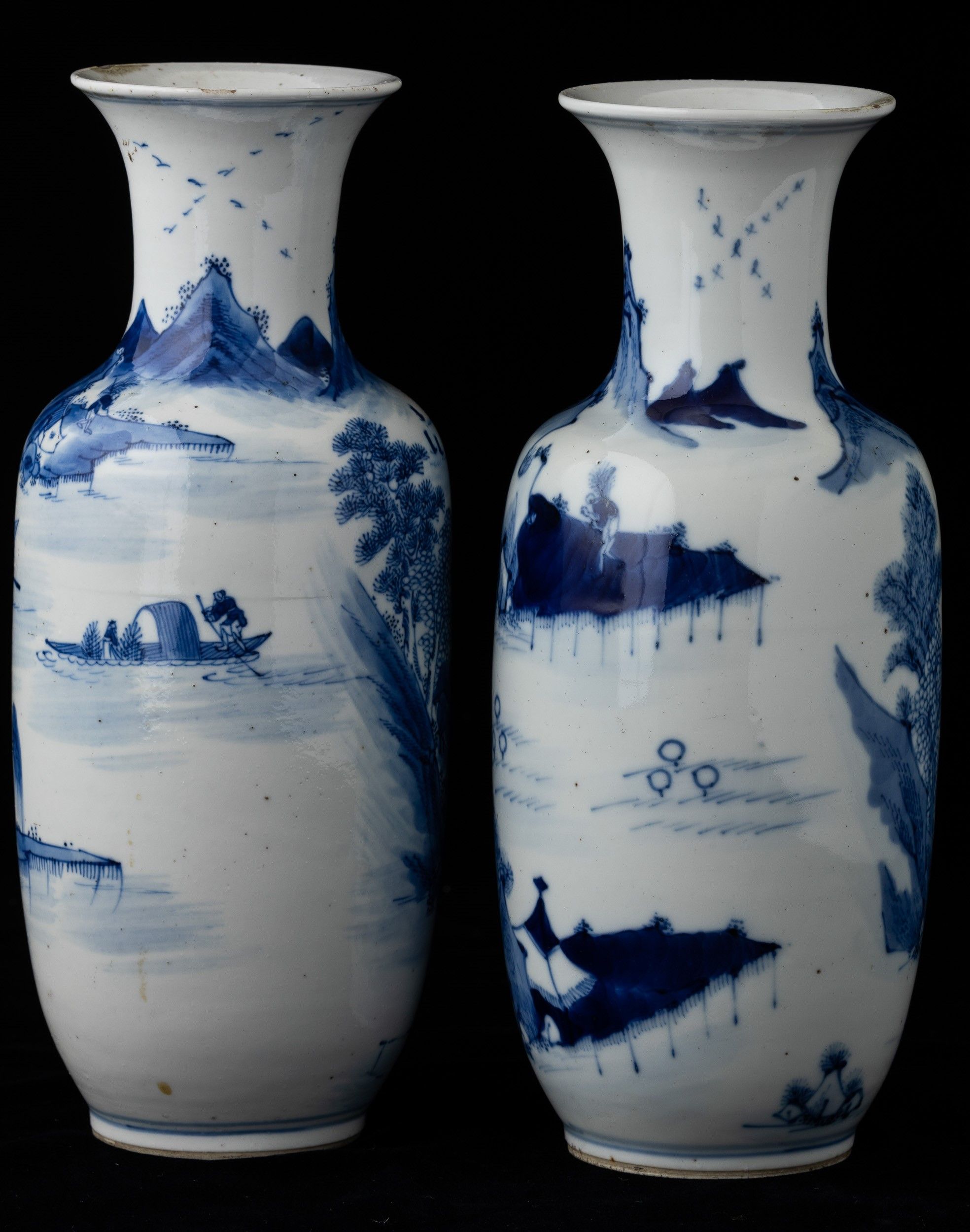 Coppia di vasi in porcellana bianca e blu raffiguranti paesaggi, Cina, Dinastia [..]