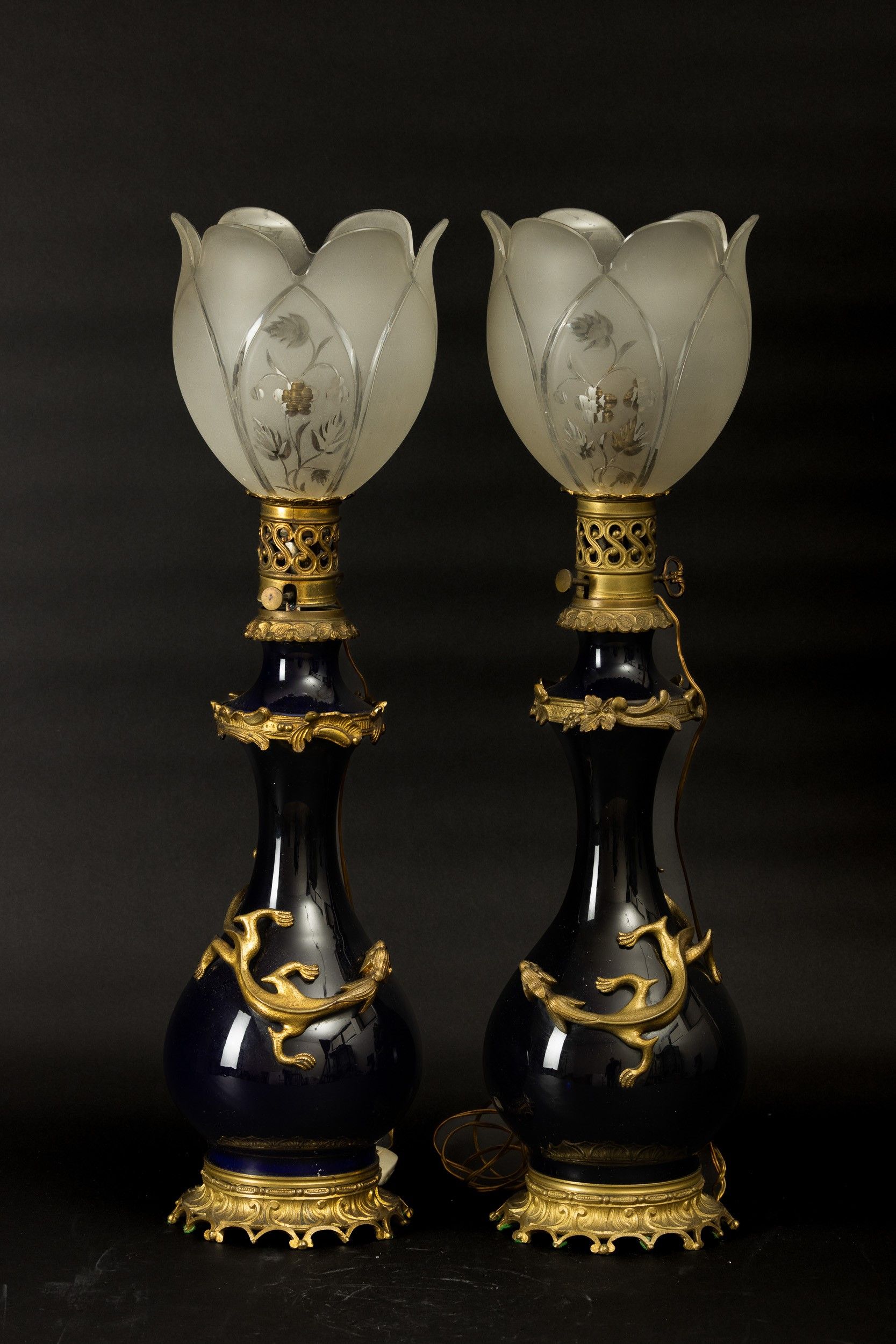 Coppia di vasi in porcellana monocroma blu con figure di draghetti a rilievo, Cina, [..]