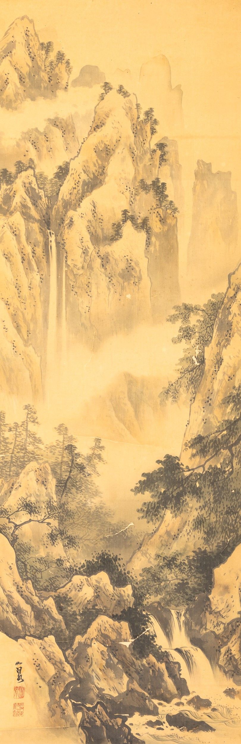 Dipinto su carta raffigurante paesaggio con iscrizione, Cina, Dinastia Qing, XIX [..]