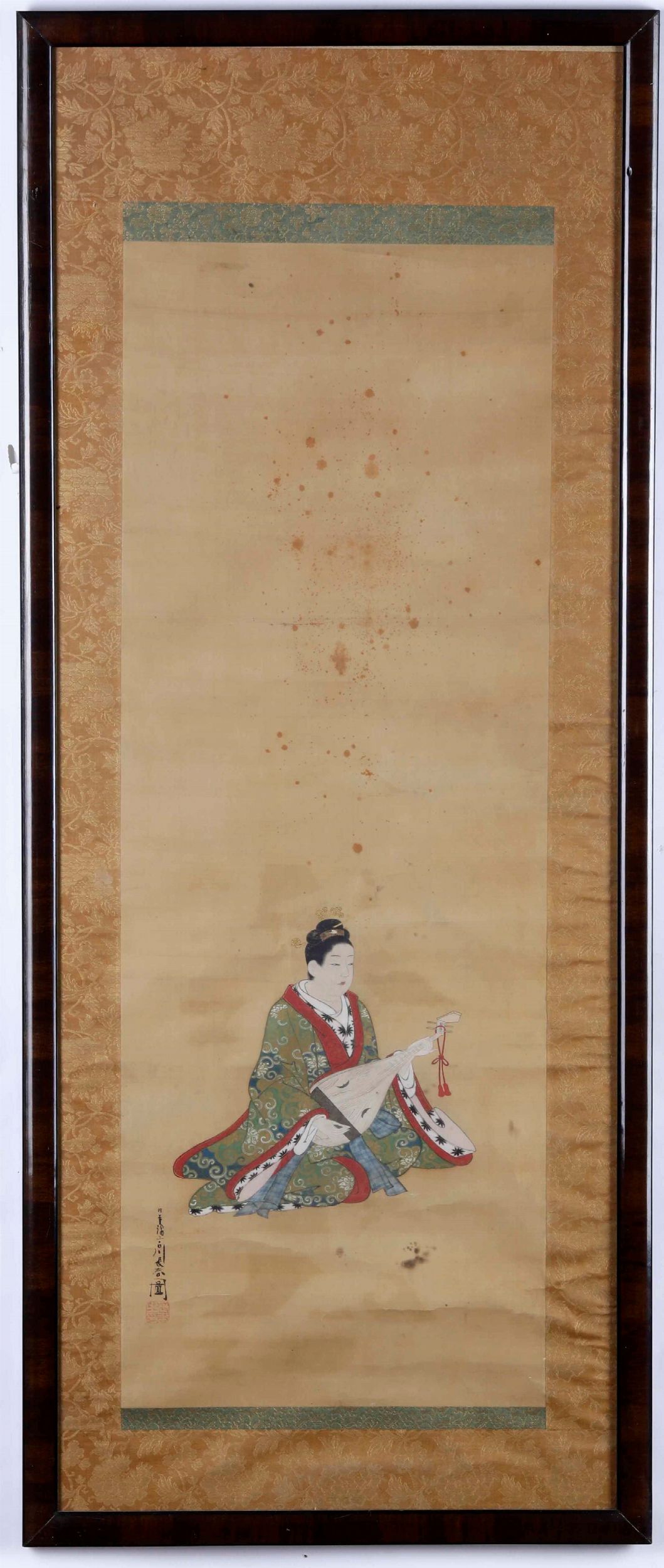 Dipinto su carta raffigurante suonatore, Giappone, periodo Edo (1603-1868)