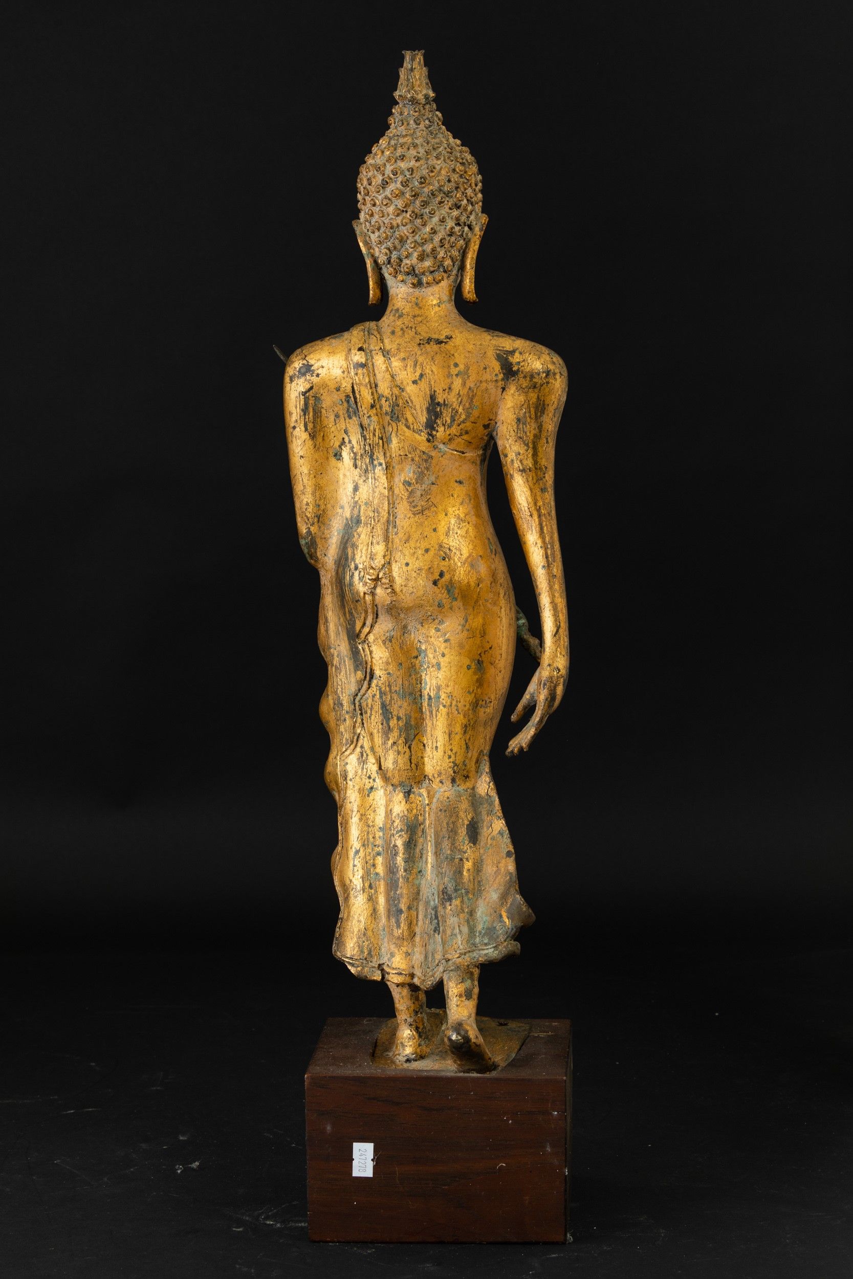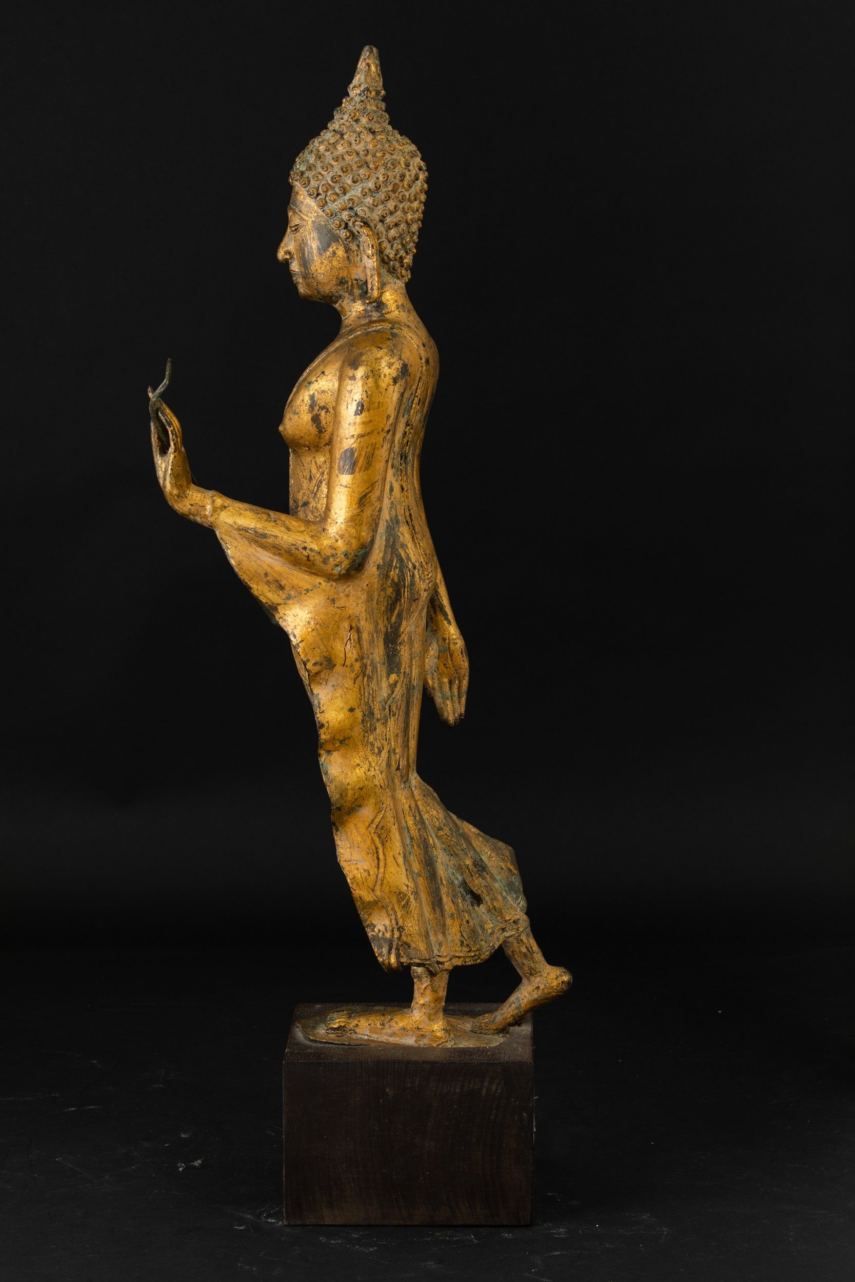 Figura di Buddha stante in bronzo dorato, Thailandia, Ayutthaya, XVII secolo