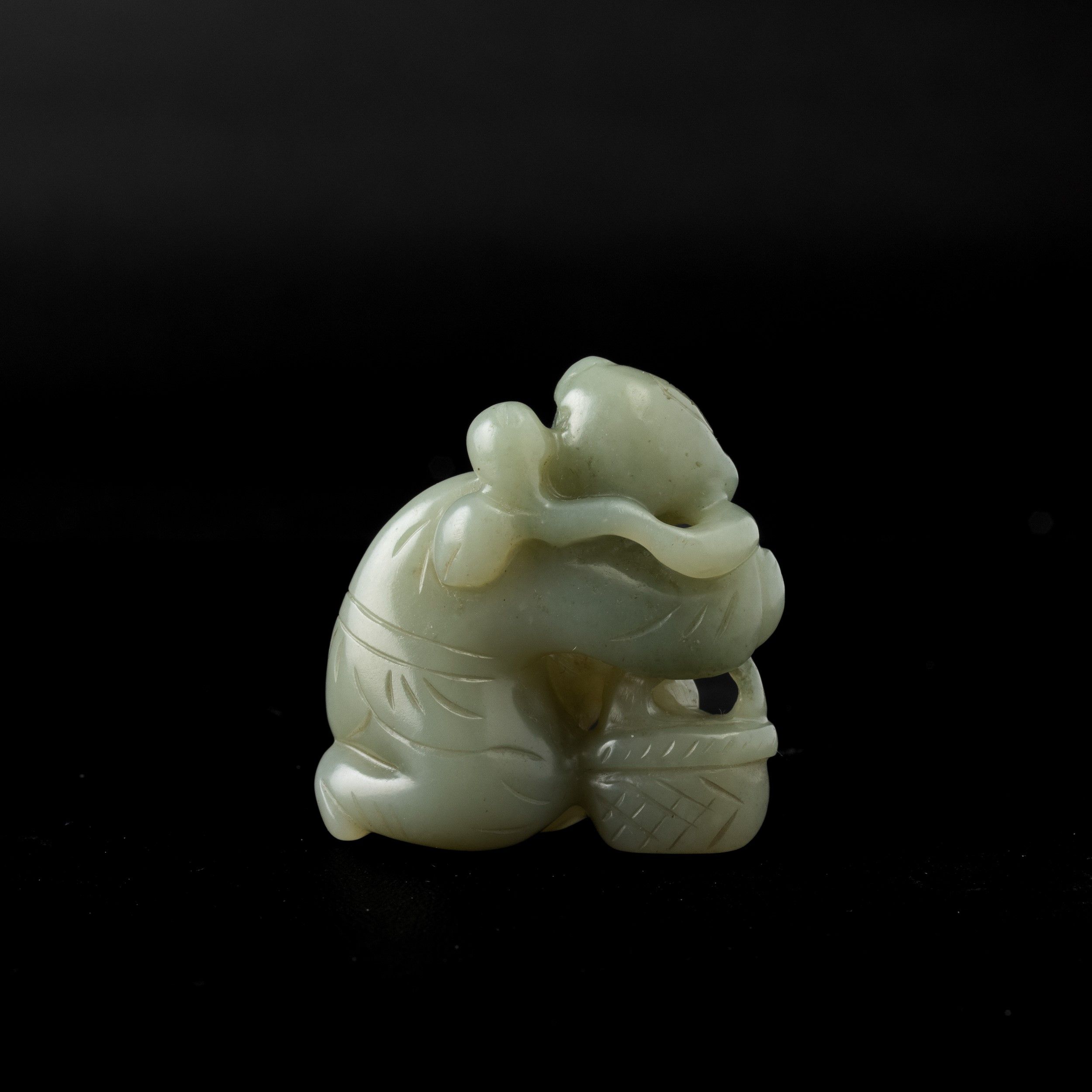 Gruppo in giada Celadon raffigurante personaggio con cesto, Cina, Dinastia Qing, [..]