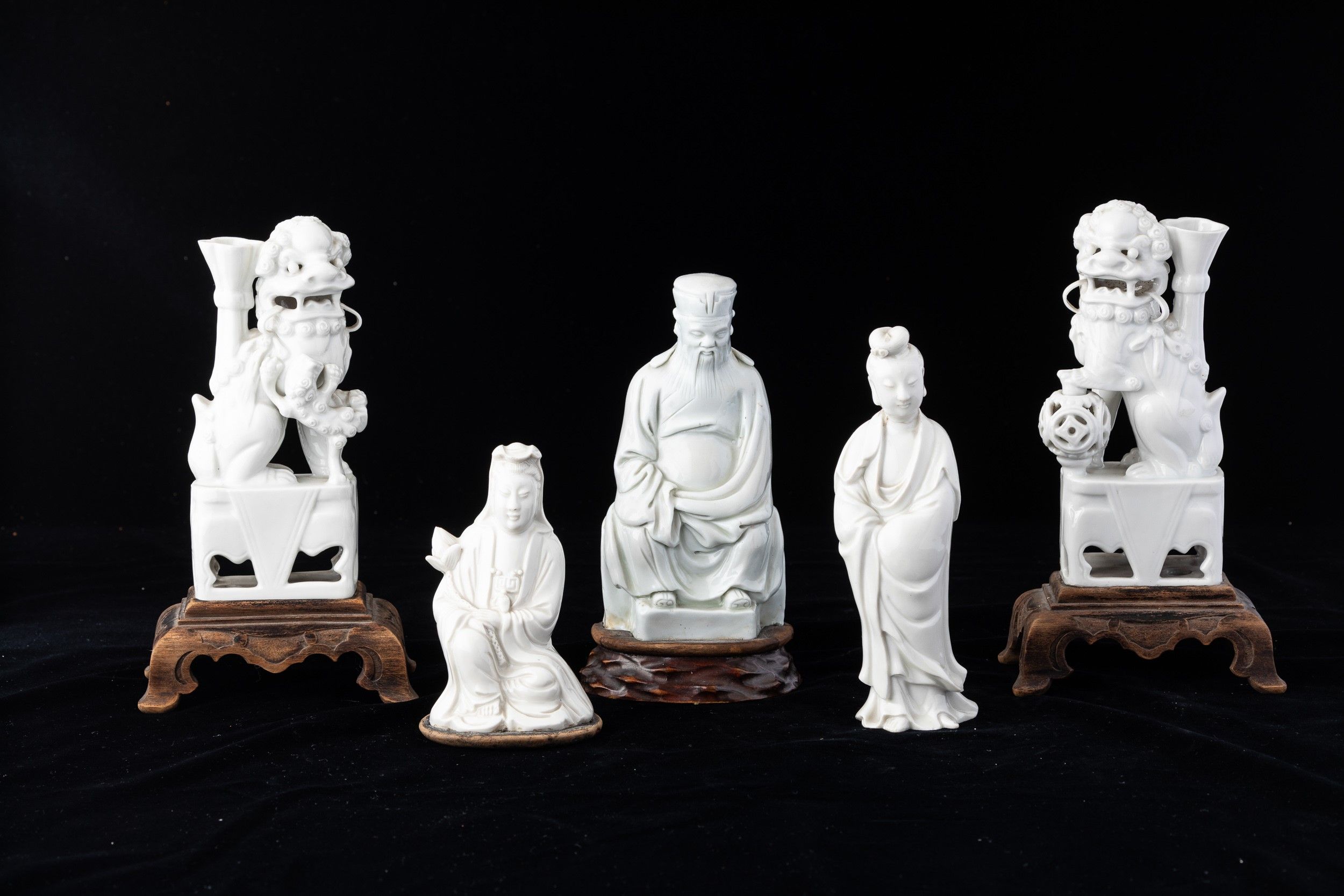 Lotto composto da cinque sculture diverse in porcellana Blanc de Chine raffiguranti [..]