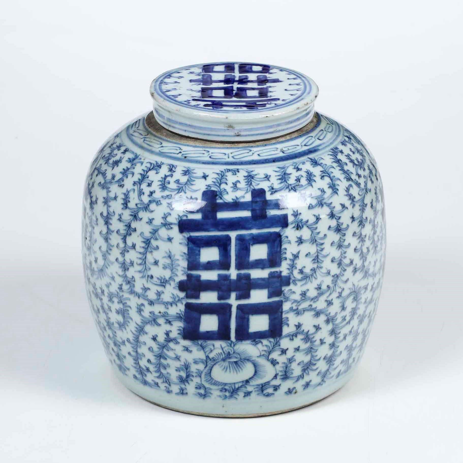 Potiche in porcellana bianca e blu con ideogramma e decori vegetali, Cina, Dinastia [..]