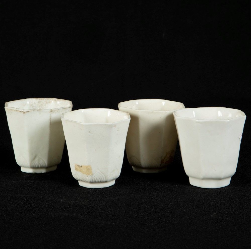 Quattro coppe da libagione in porcellana Blanc de Chine Dehua con decoro vegetale [..]