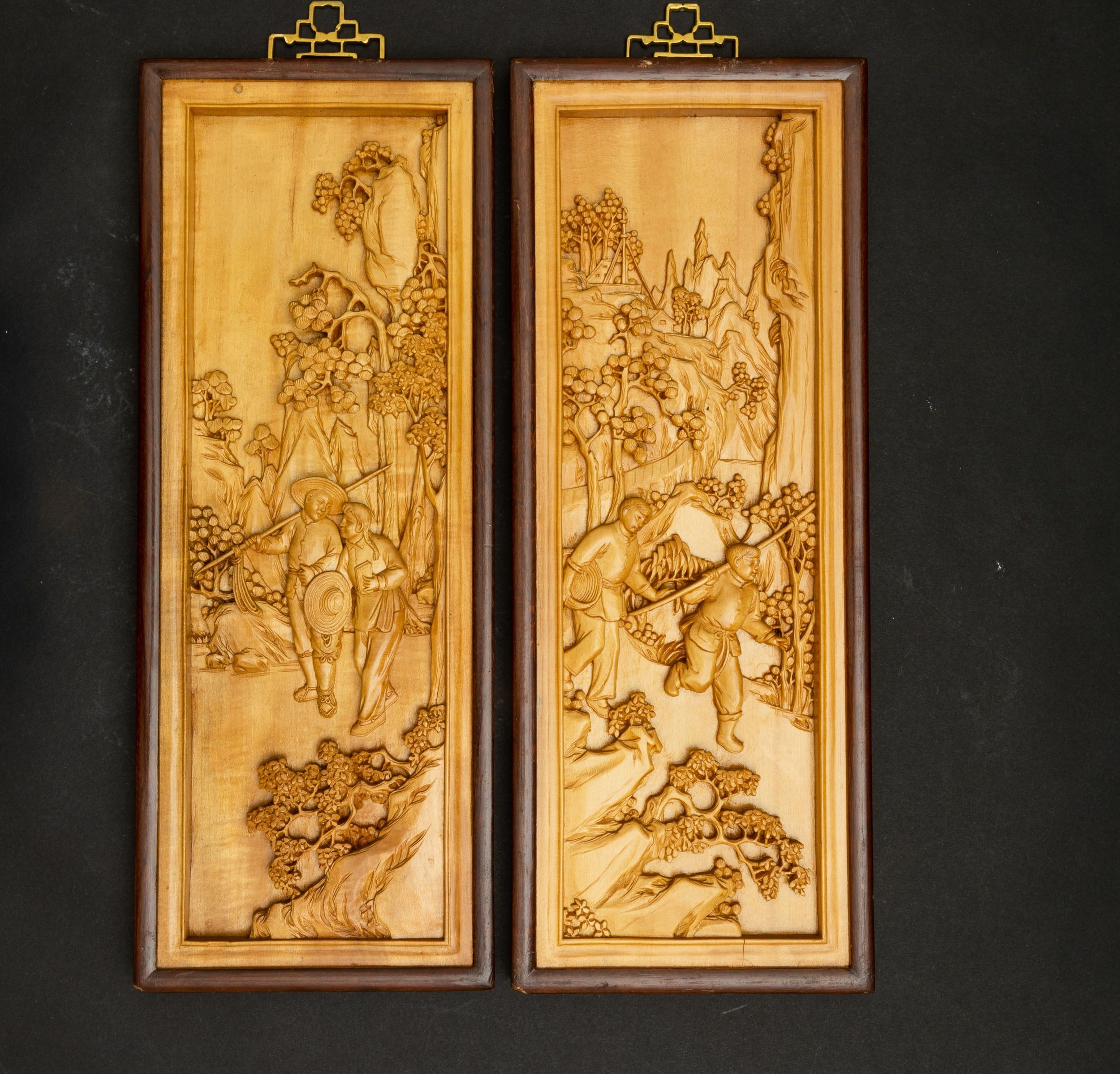 Quattro pannelli scolpiti in legno raffiguranti scene di vita comune, Cina, Repubblica, [..]