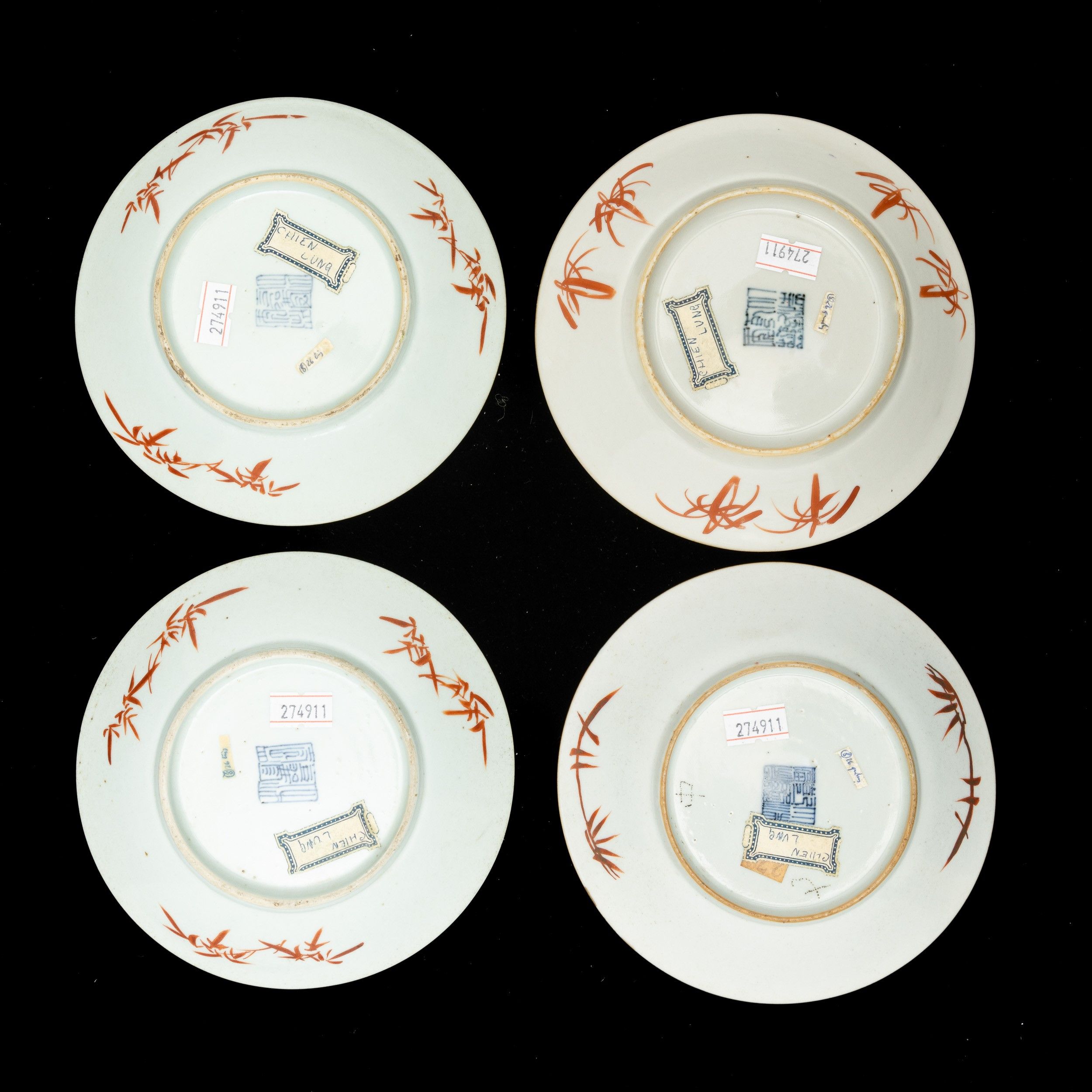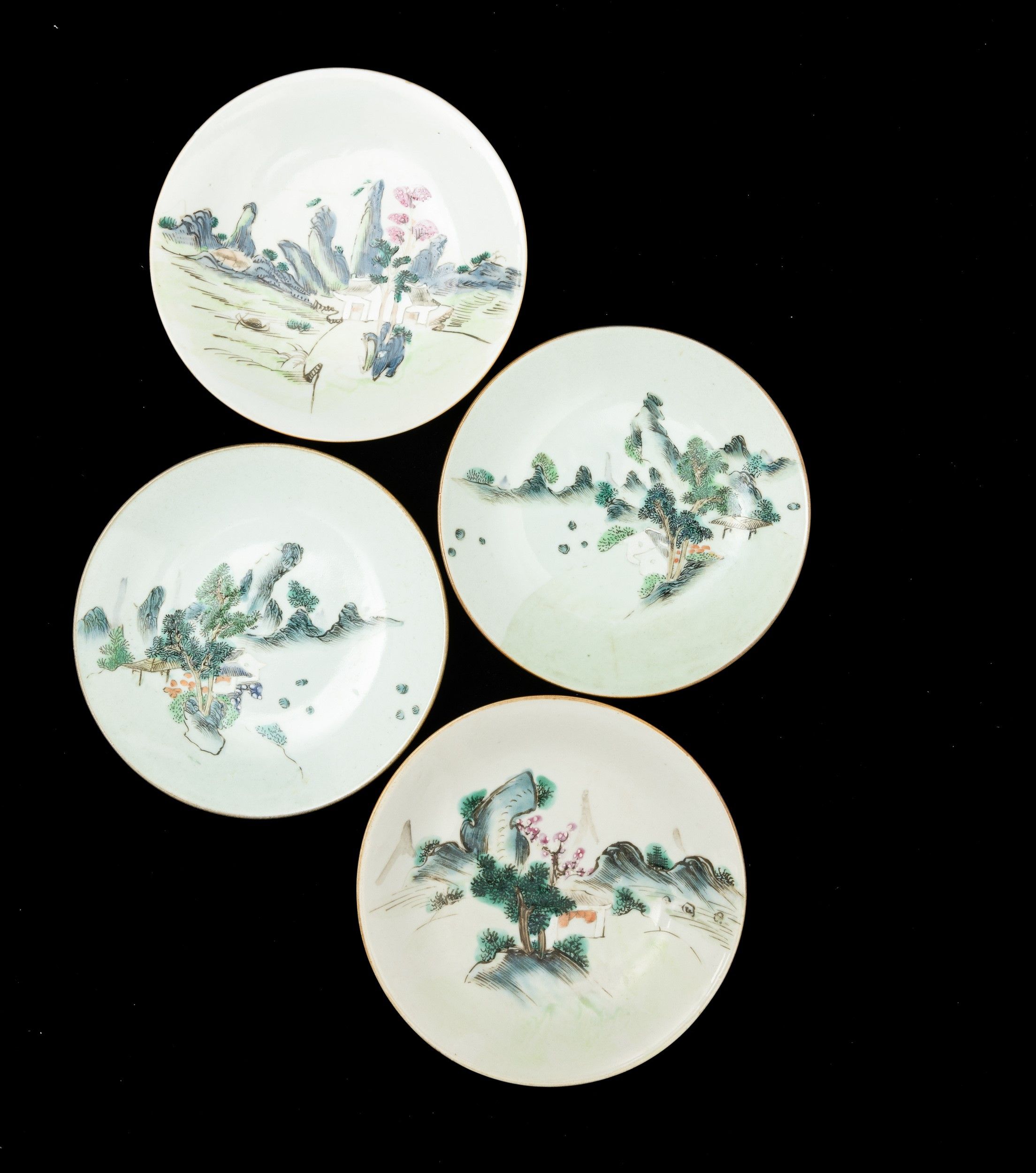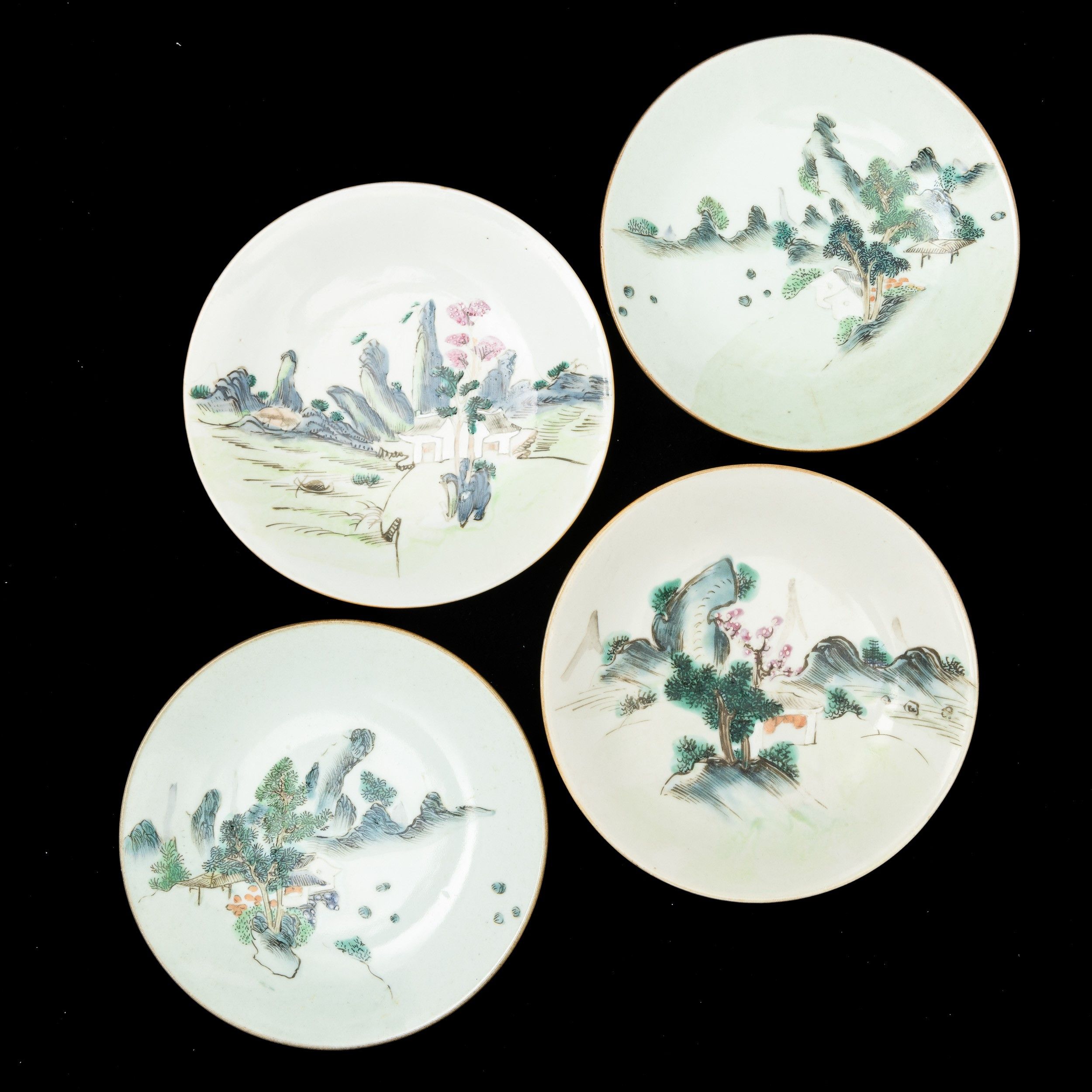 Quattro piatti in porcellana raffiguranti paesaggi, Cina, Dinastia Qing, XIX sec [..]