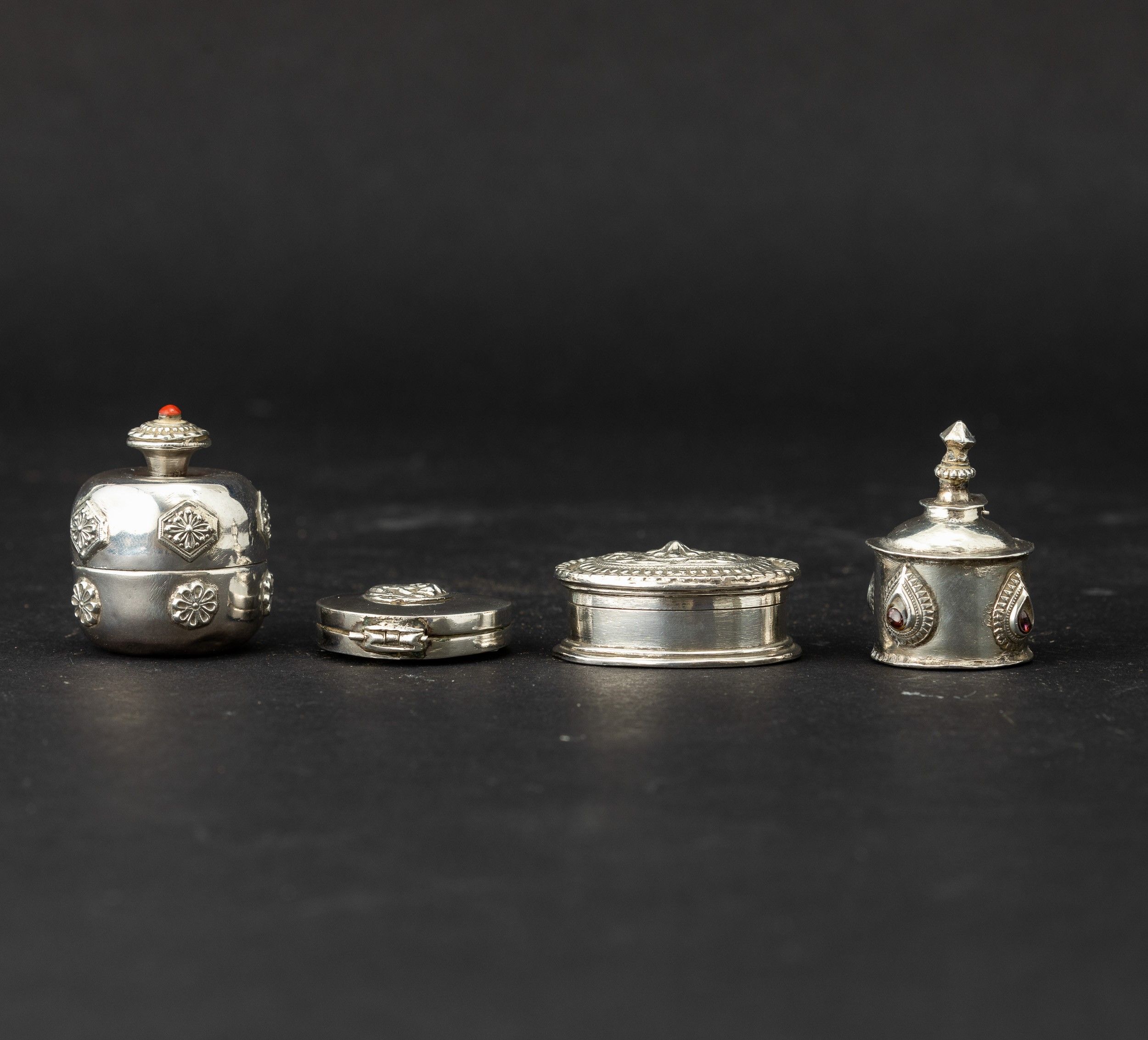 Quattro scatoline in argento sbalzato e cesellato, India, XIX secolo