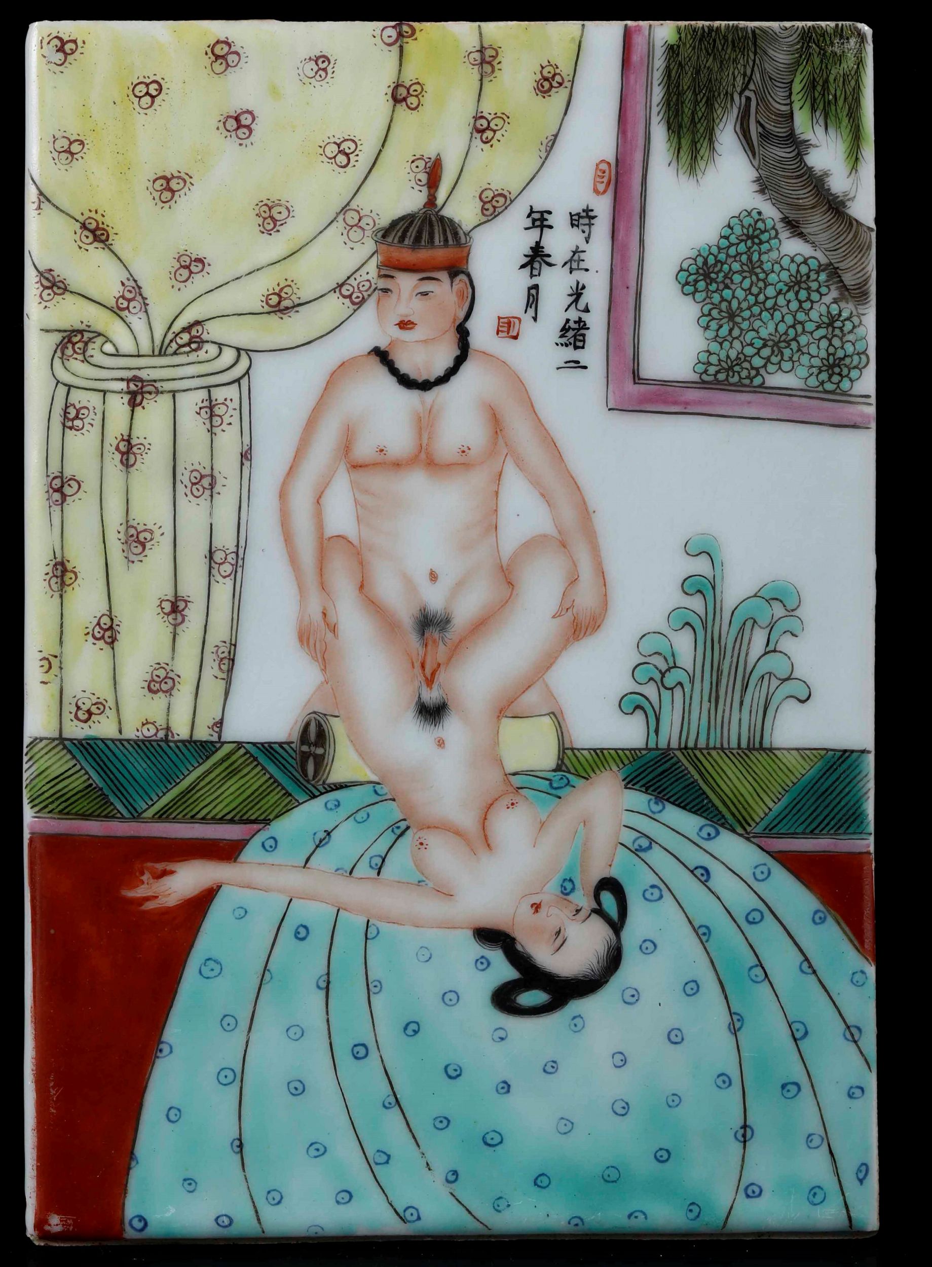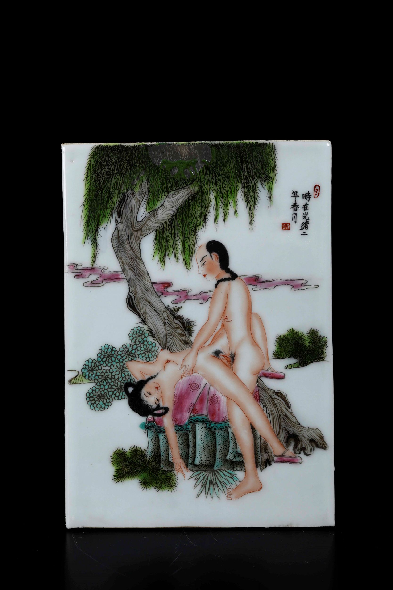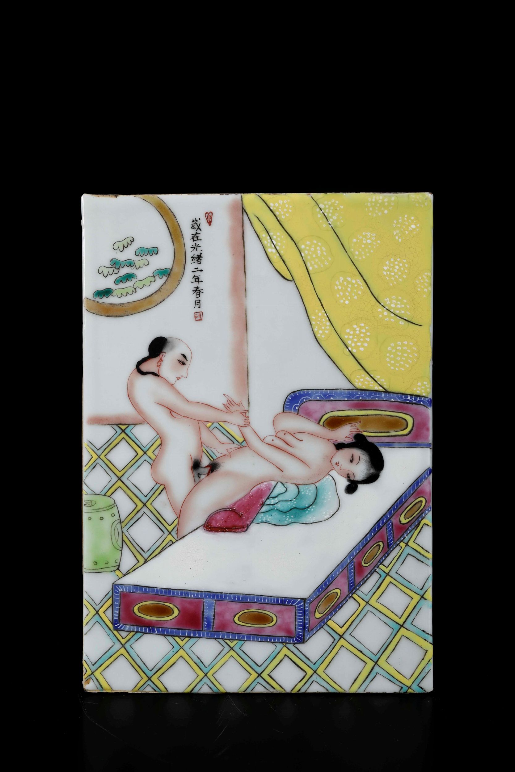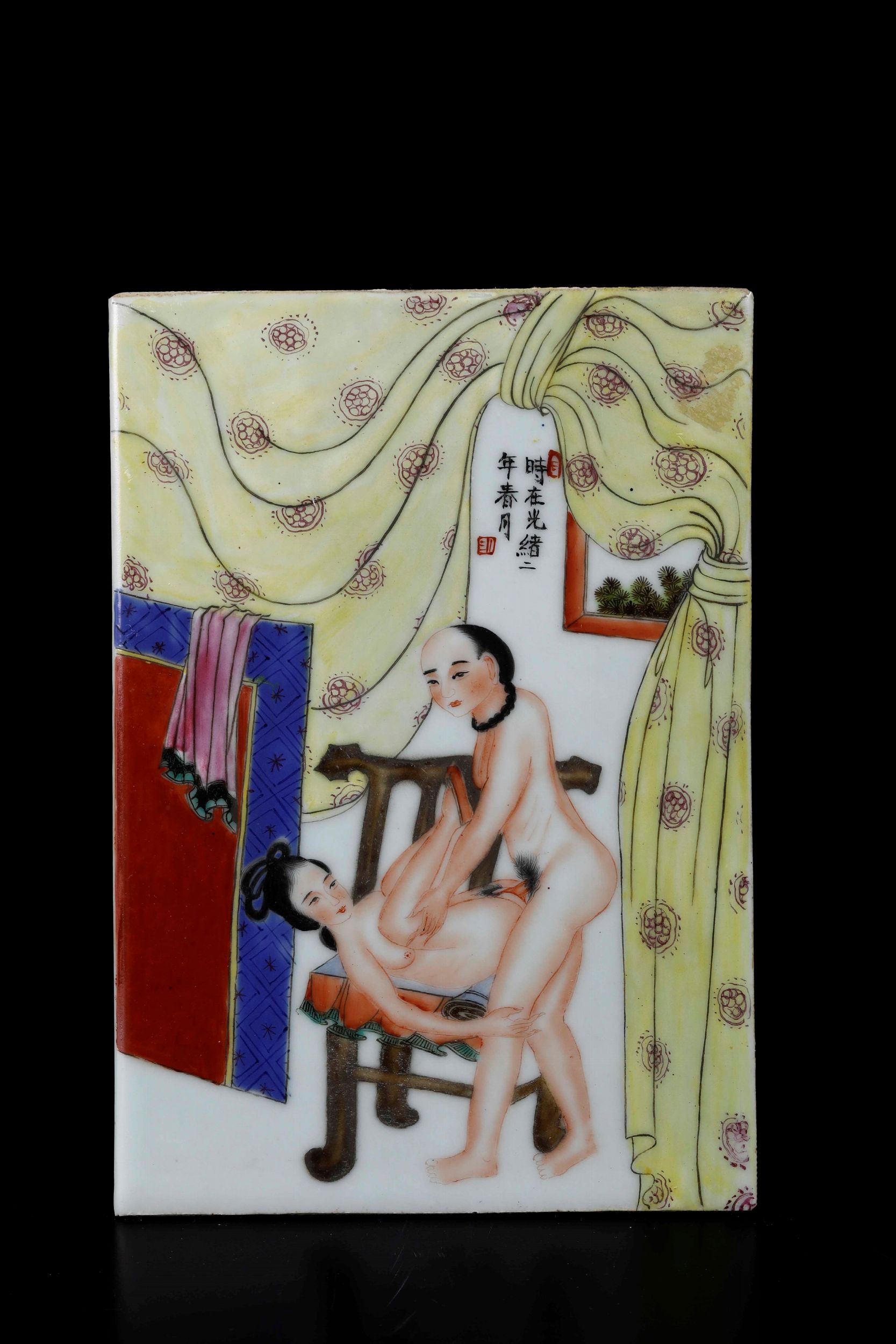 Sei placche in porcellana a soggetto erotico e iscrizioni, Cina, Repubblica, XX [..]