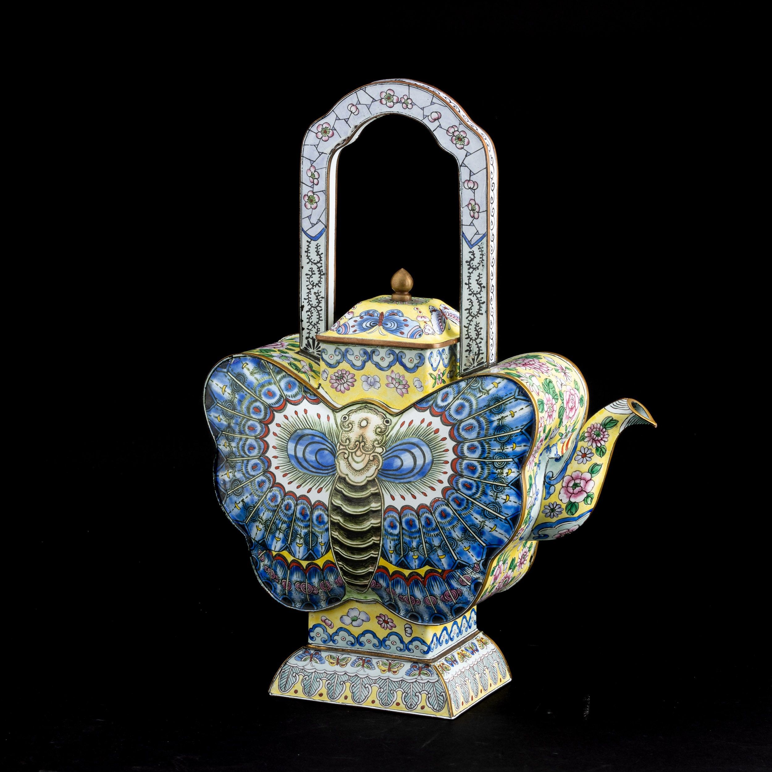 Teiera in smalto a foggia di farfalla con decori floreali, Cina, Dinastia Qing, [..]