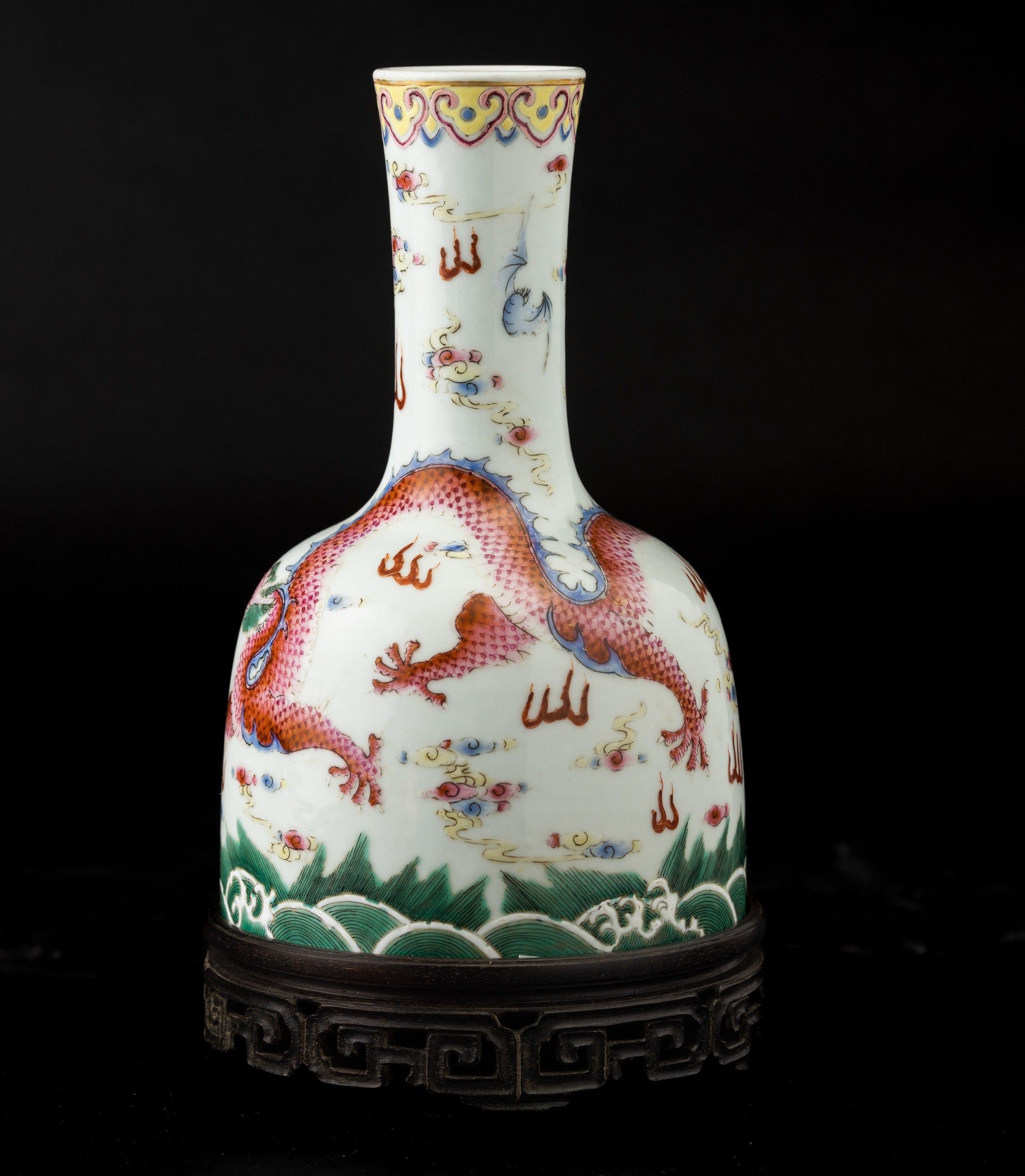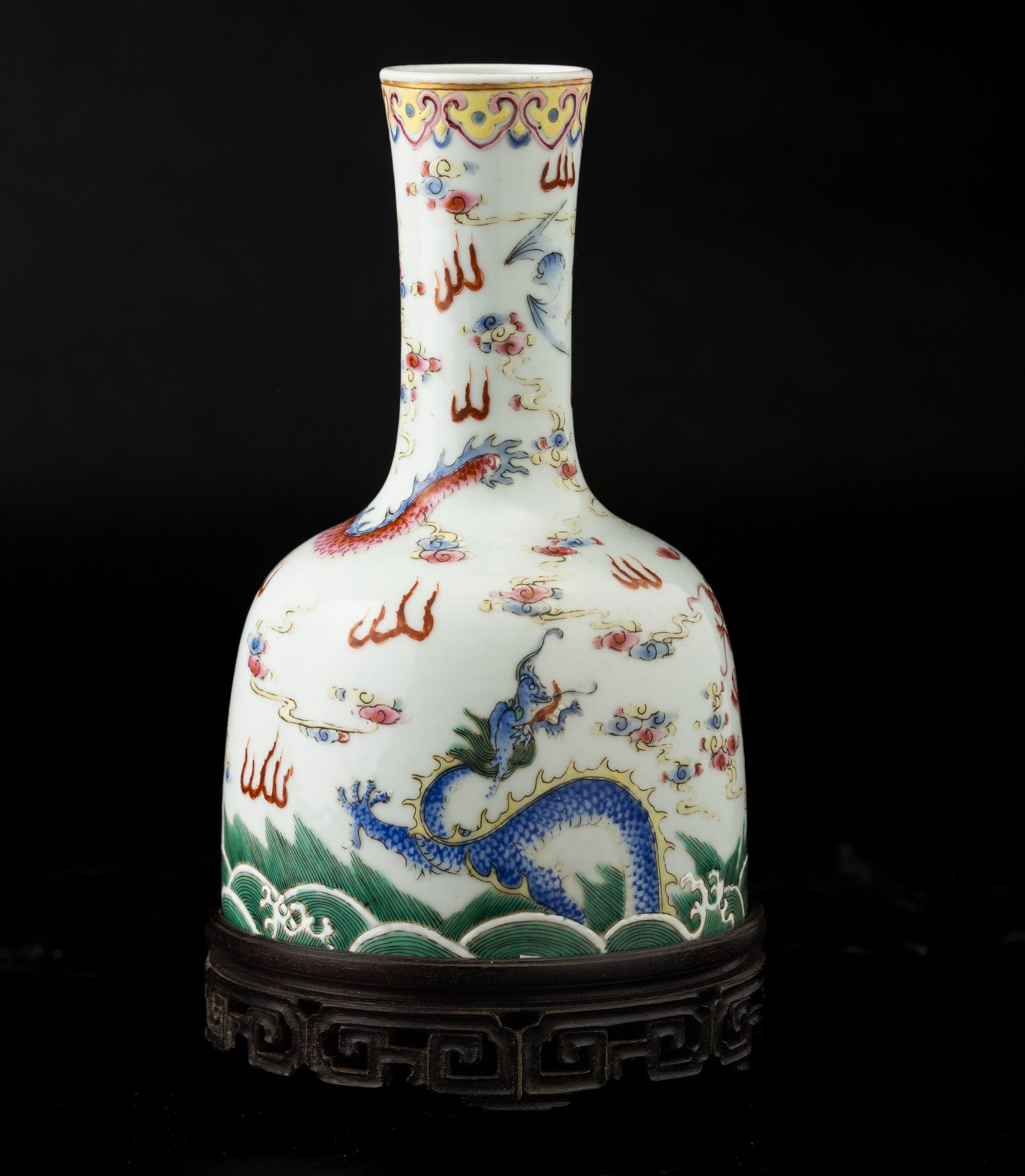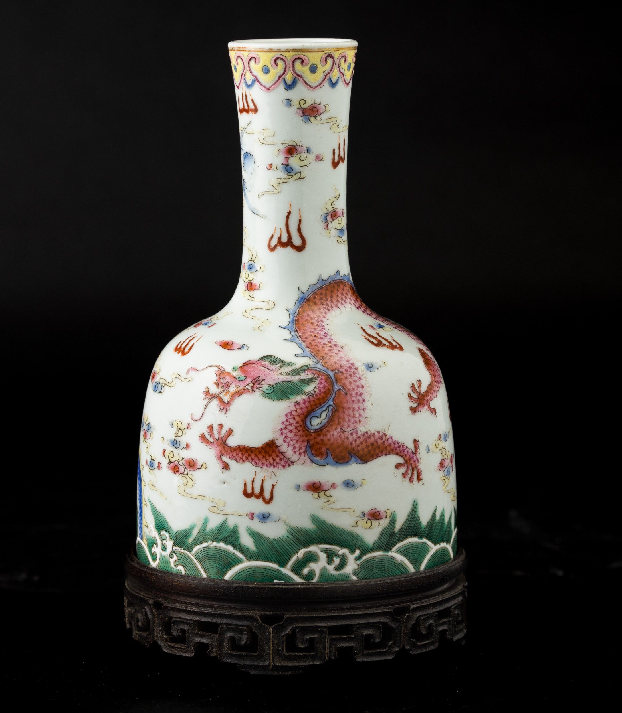 Vaso a bottiglia in porcellana con decoro di draghi tra le nuvole, Cina, Repubblica, [..]