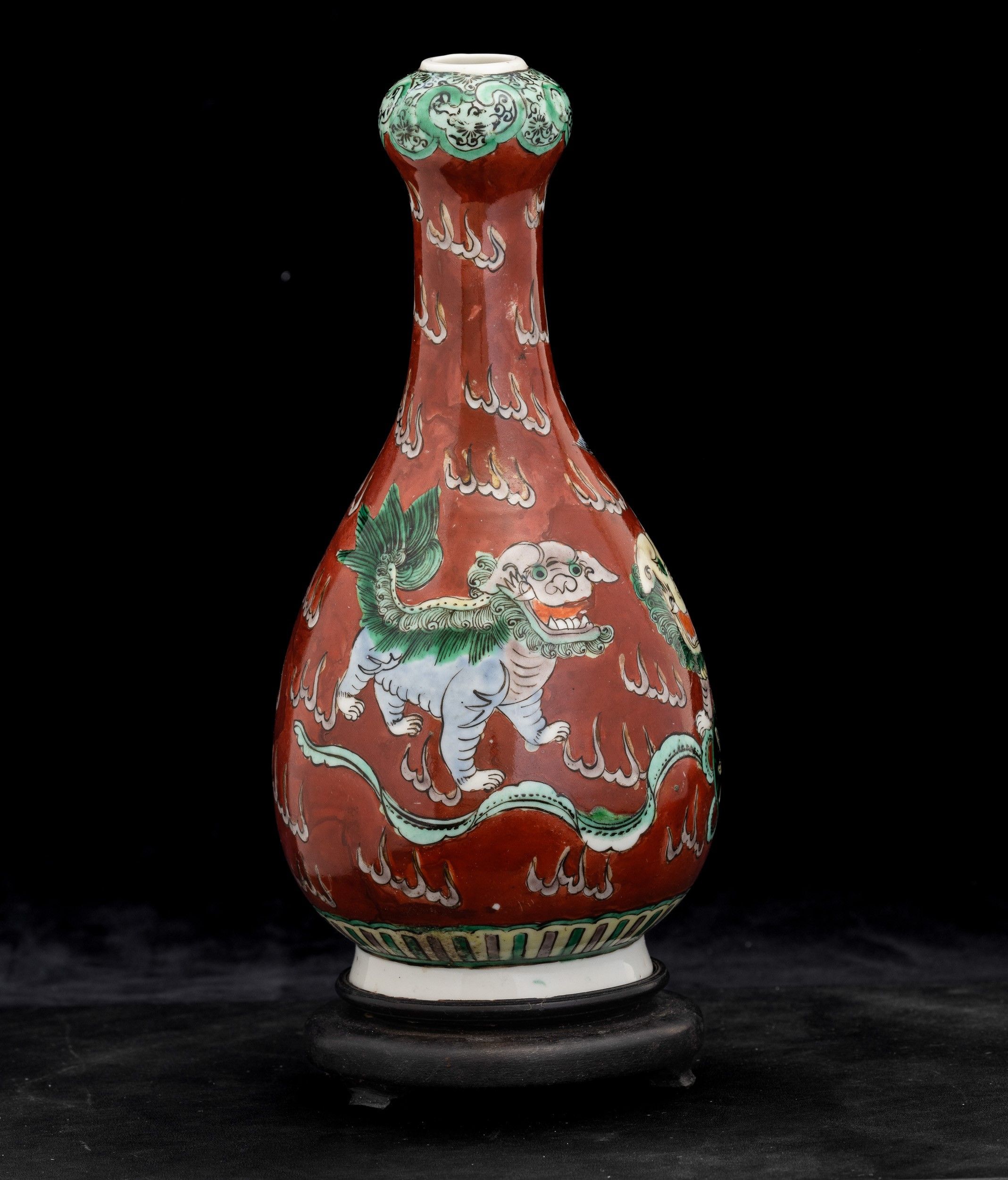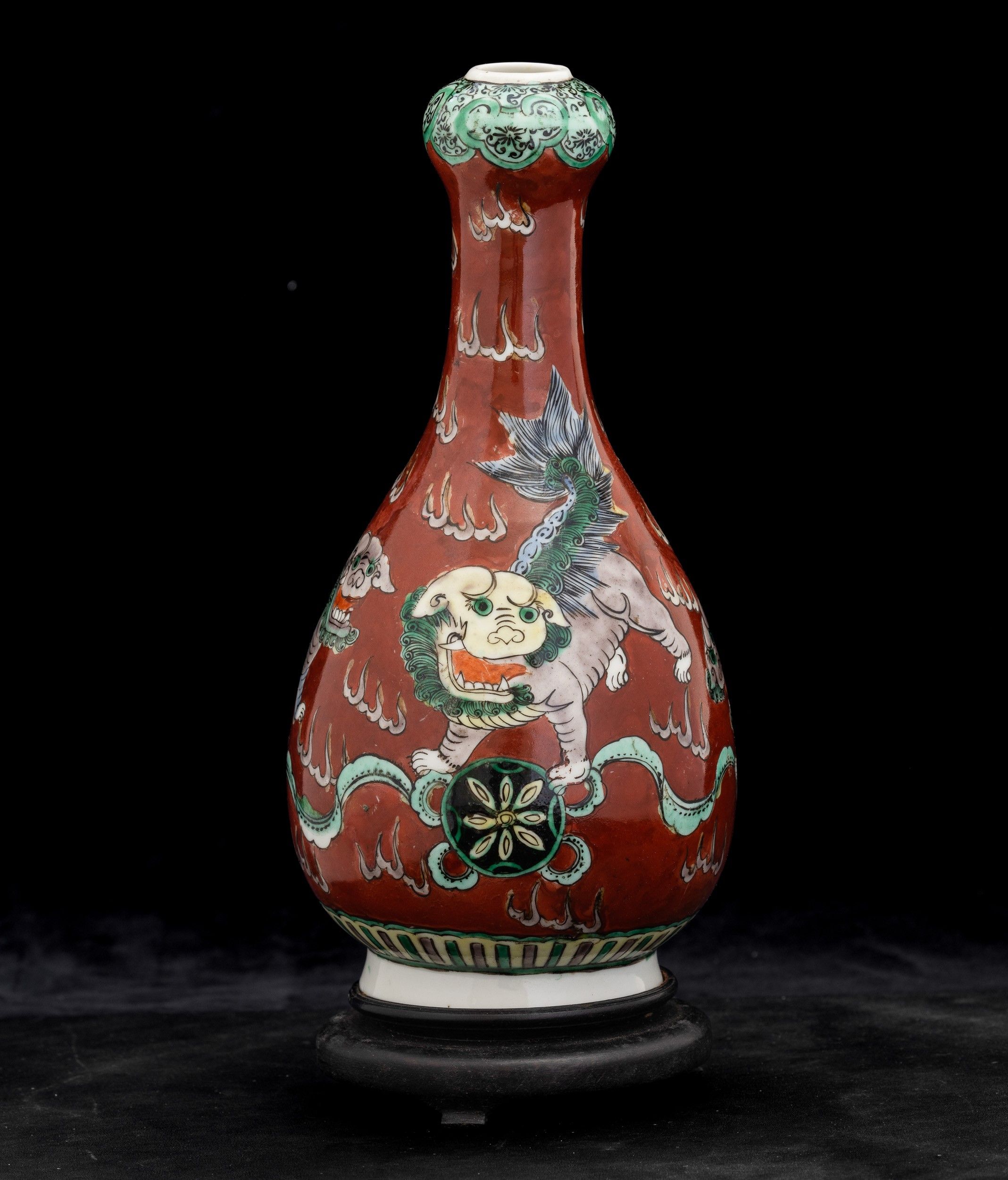 Vaso a bottiglia in porcellana Famiglia Verde raffigurante Cani di Pho su fondo [..]