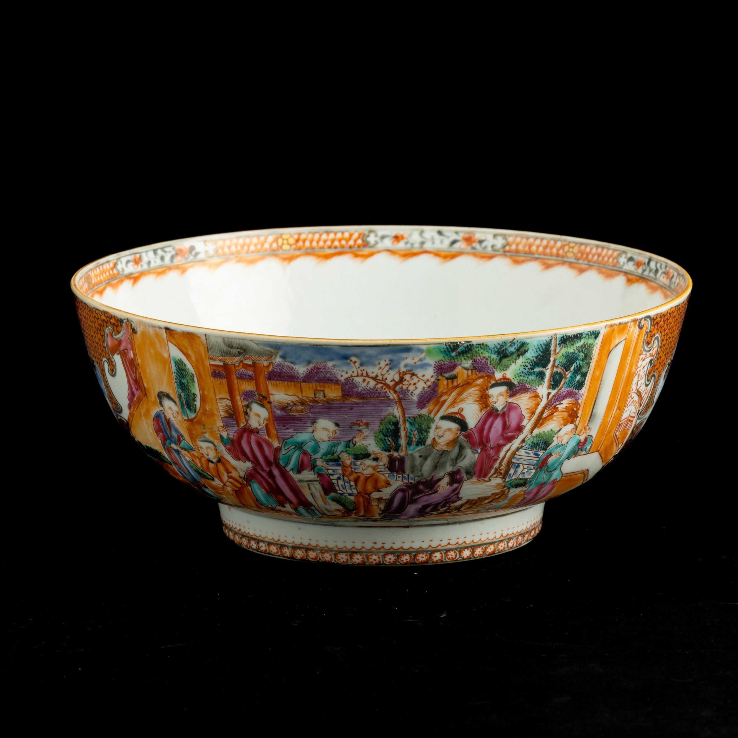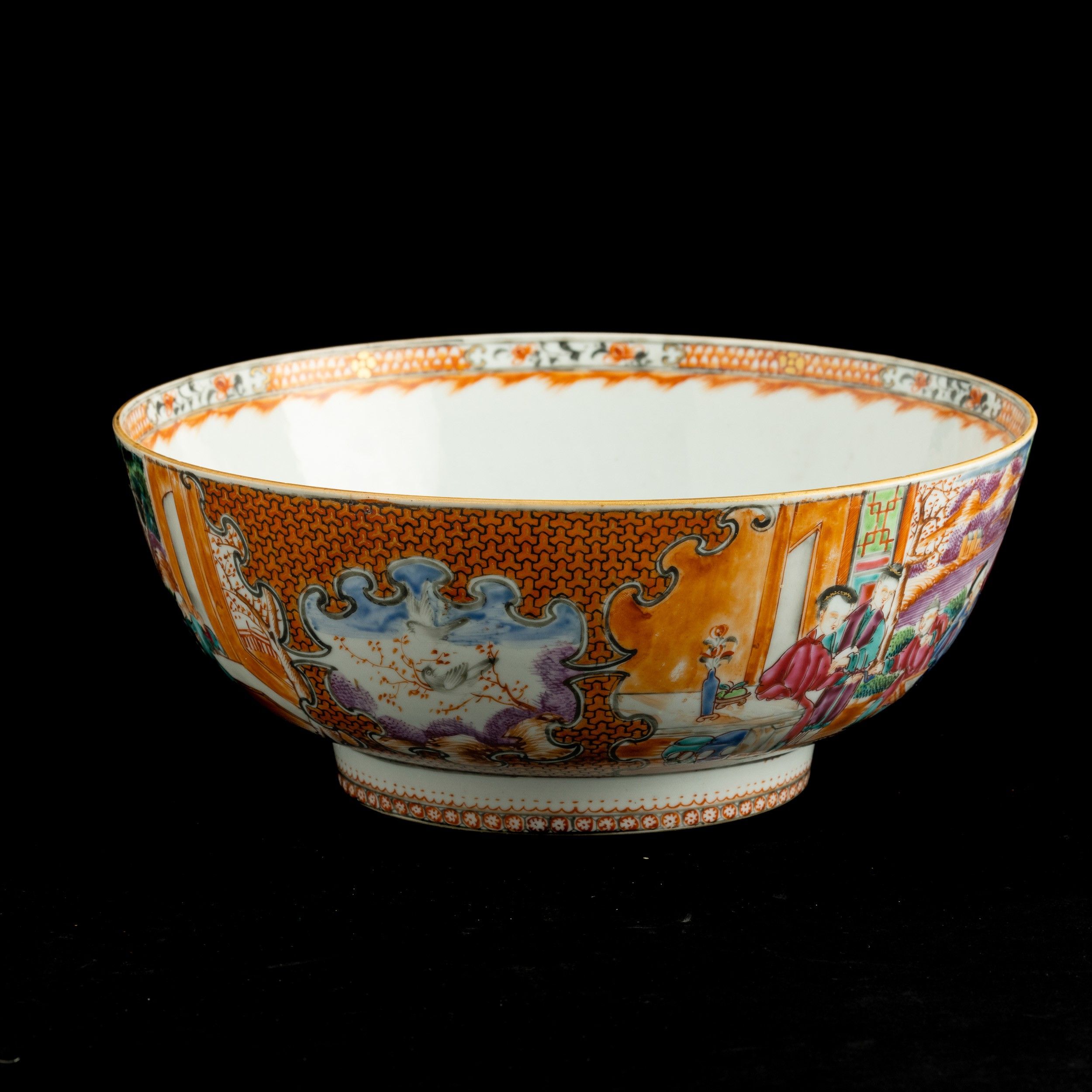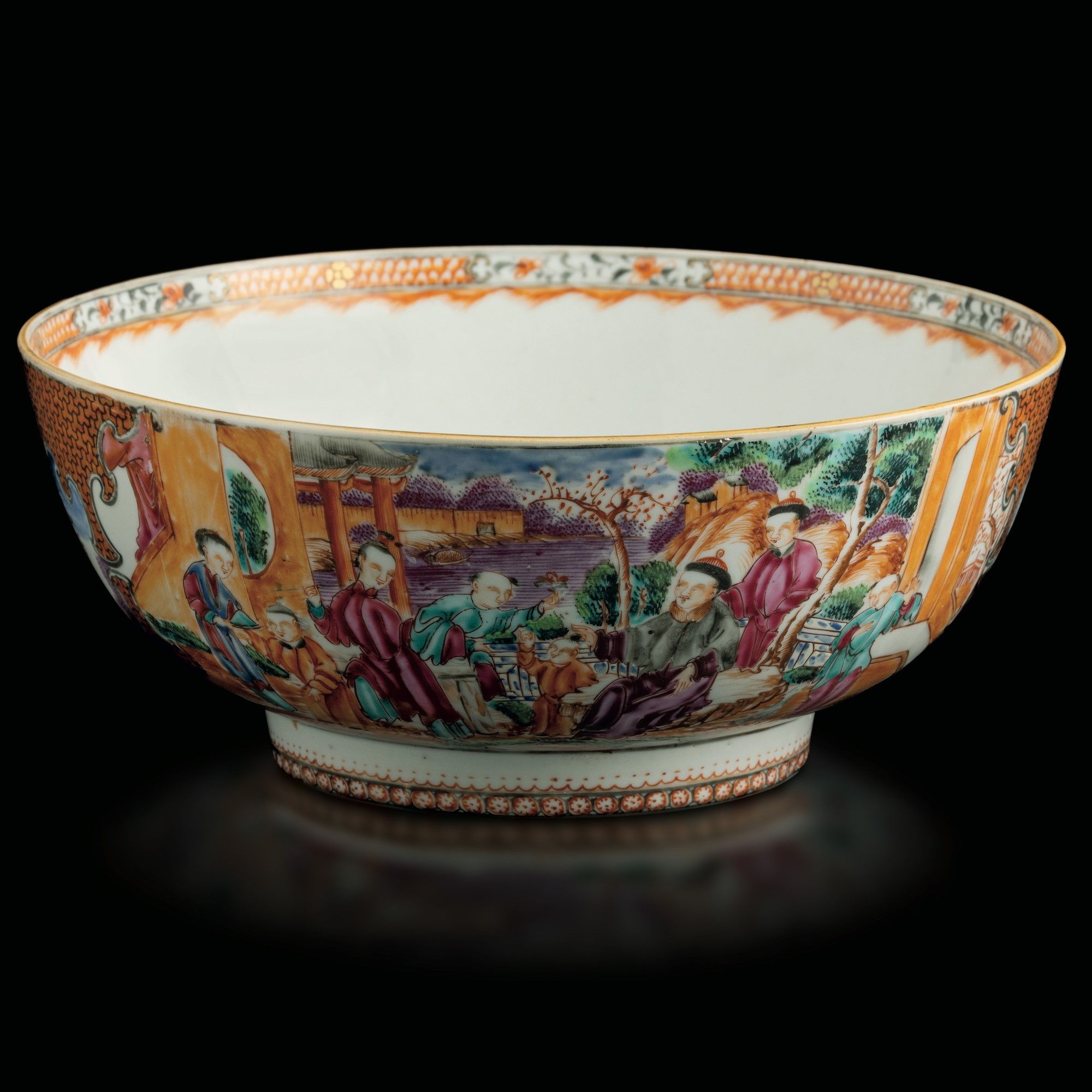 Bowl in porcellana con raffigurazioni di vita comune entro riserve sagomate e decori [..]