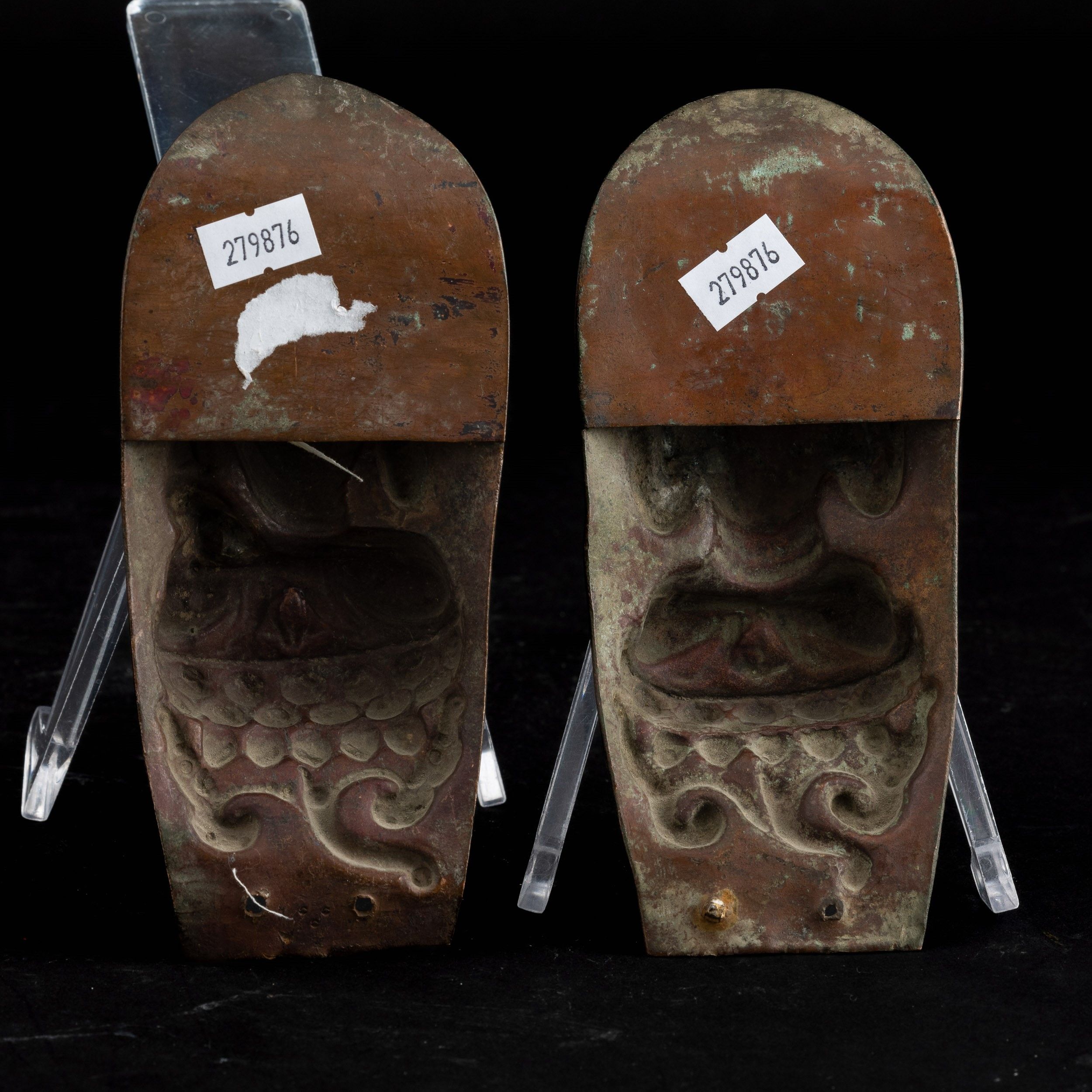 Coppia di placche in bronzo parzialmente dorato raffiguranti divinità a rilievo, [..]