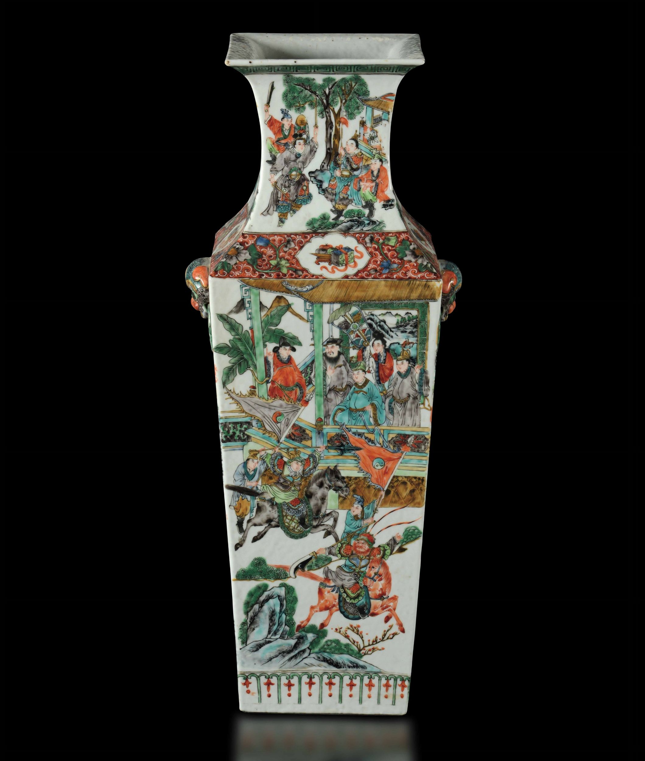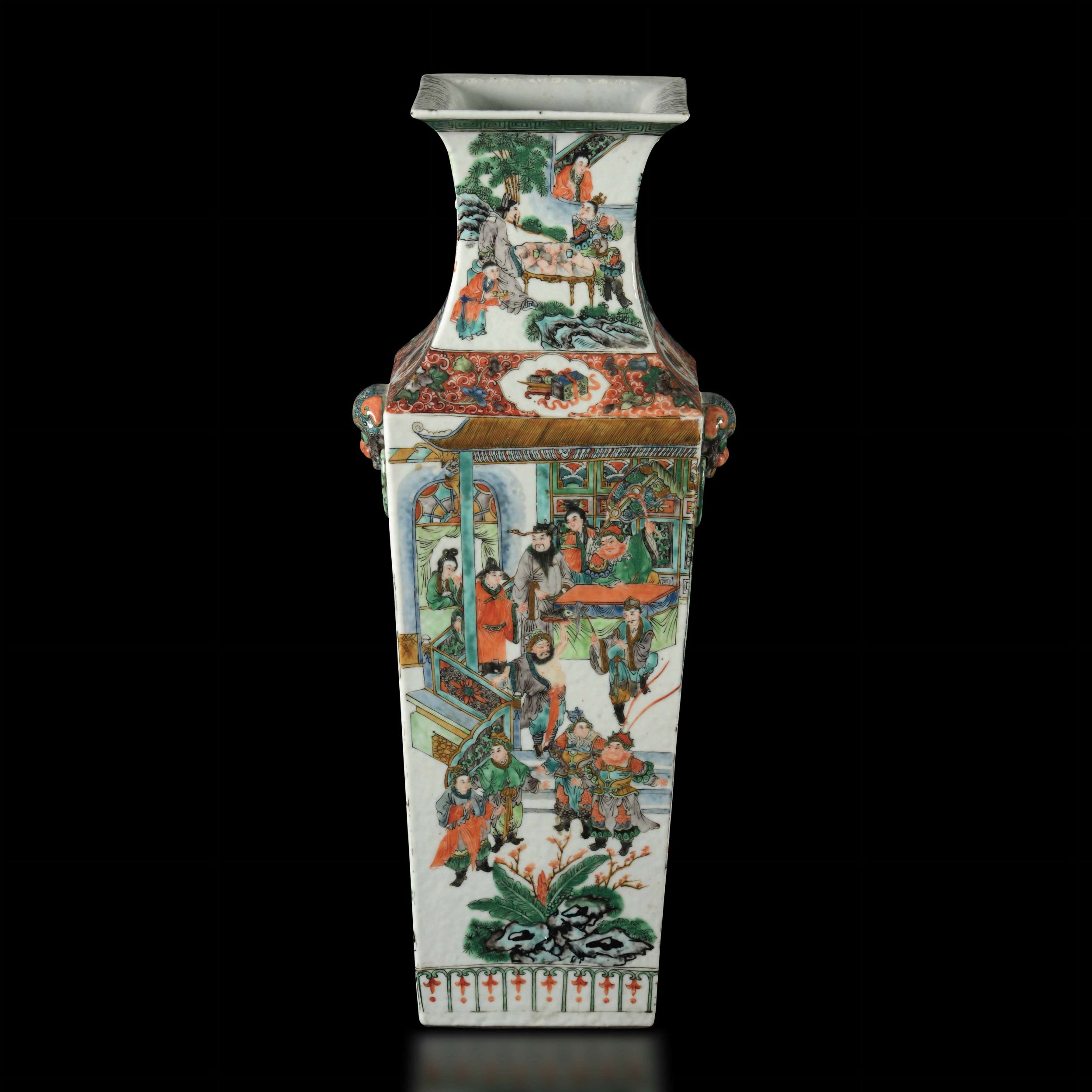 Coppia di vasi in porcellana Famiglia Verde a sezione quadrata con scene di vita [..]
