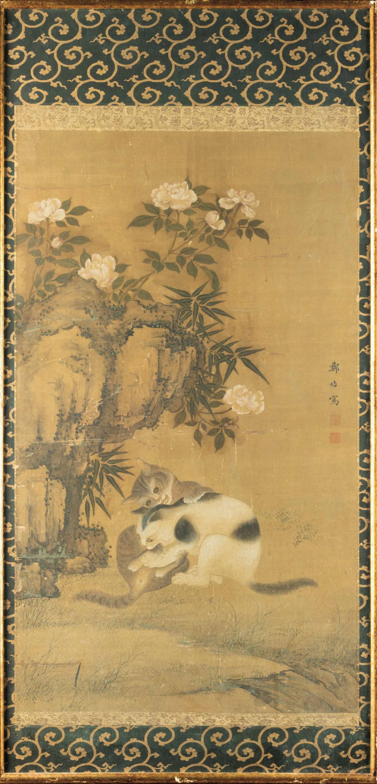Dipinto su carta raffigurante gattini che giocano e iscrizione, Cina, Dinastia Qing, [..]