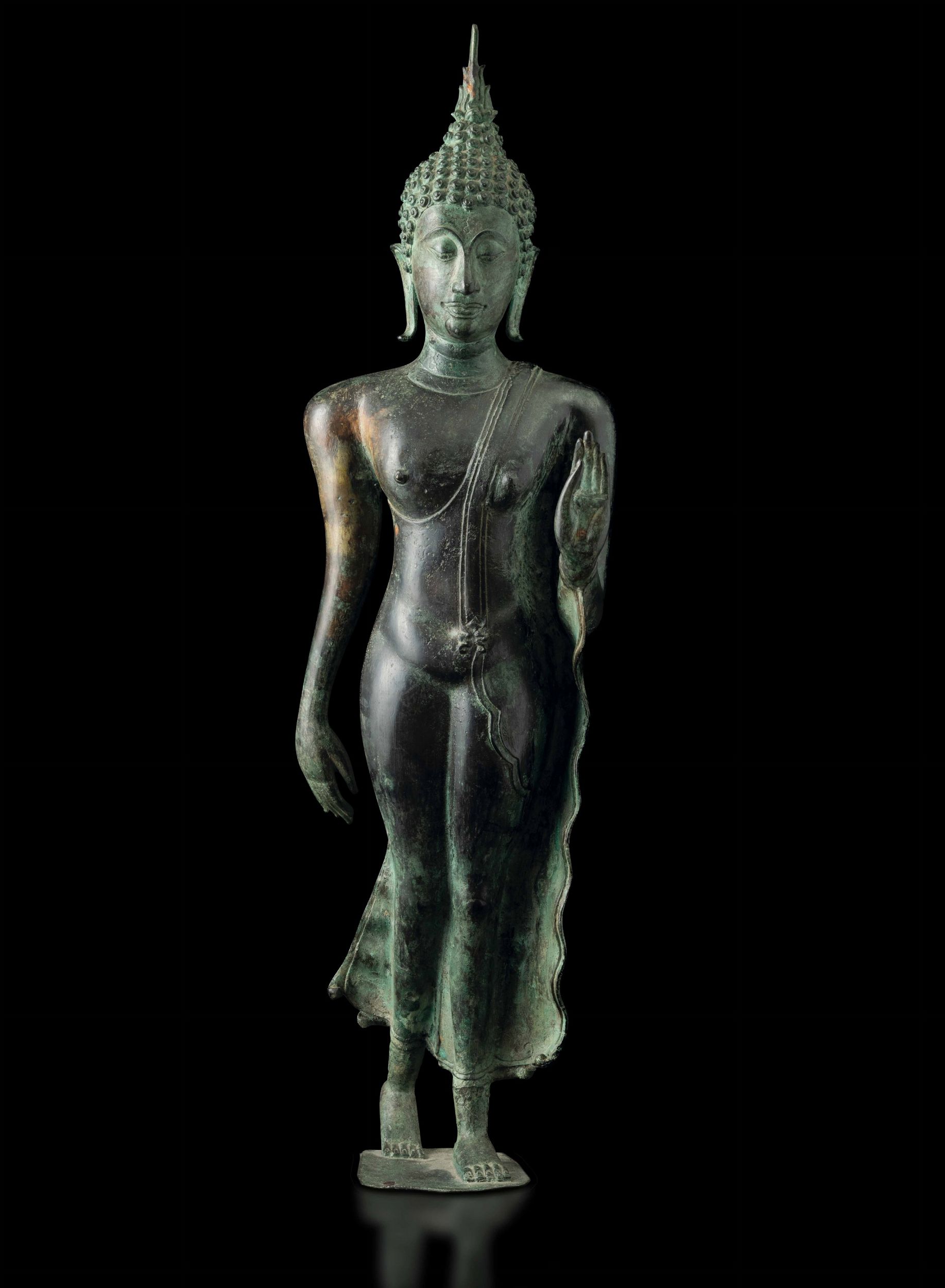 Figura di Buddha stante in bronzo, Thailandia, XIX secolo