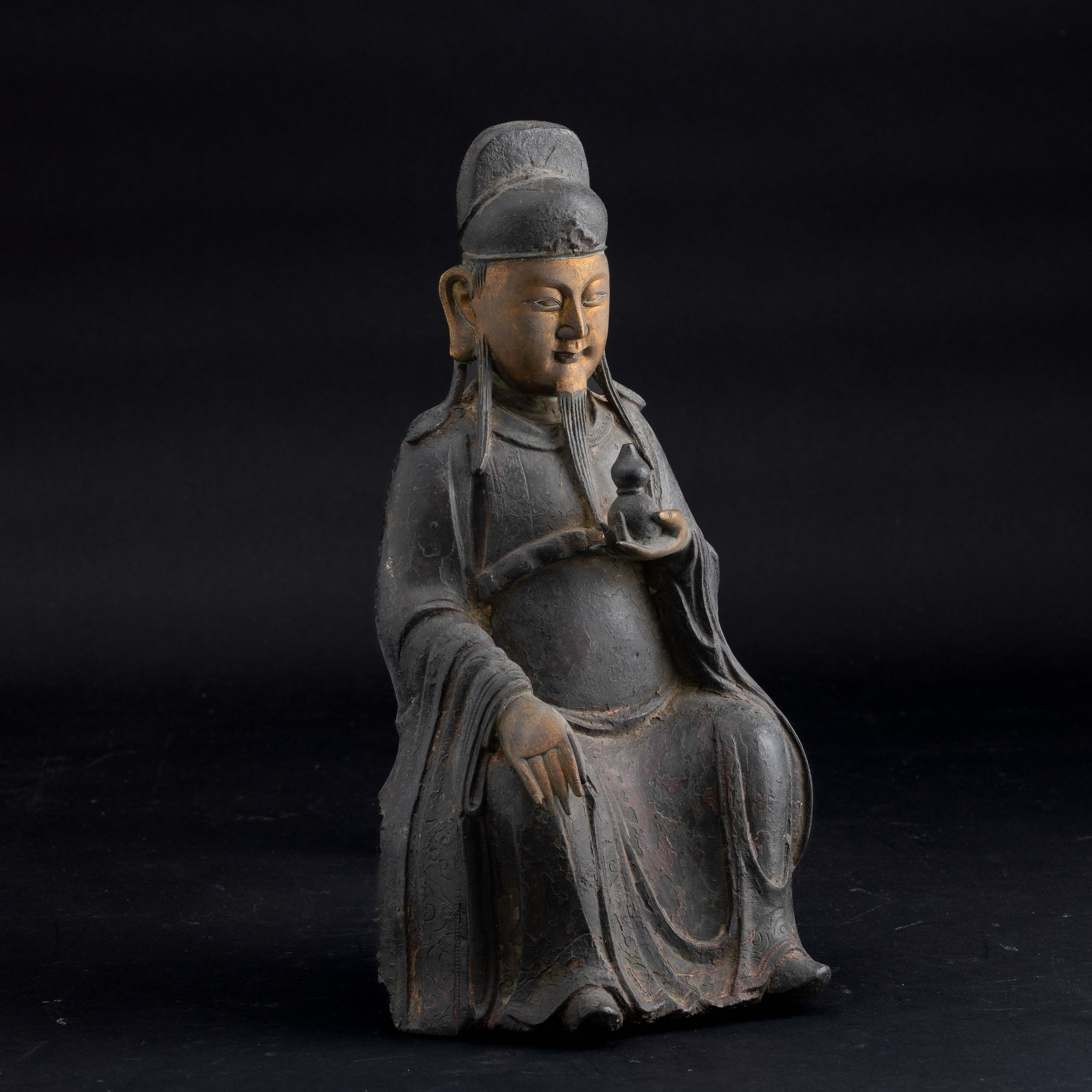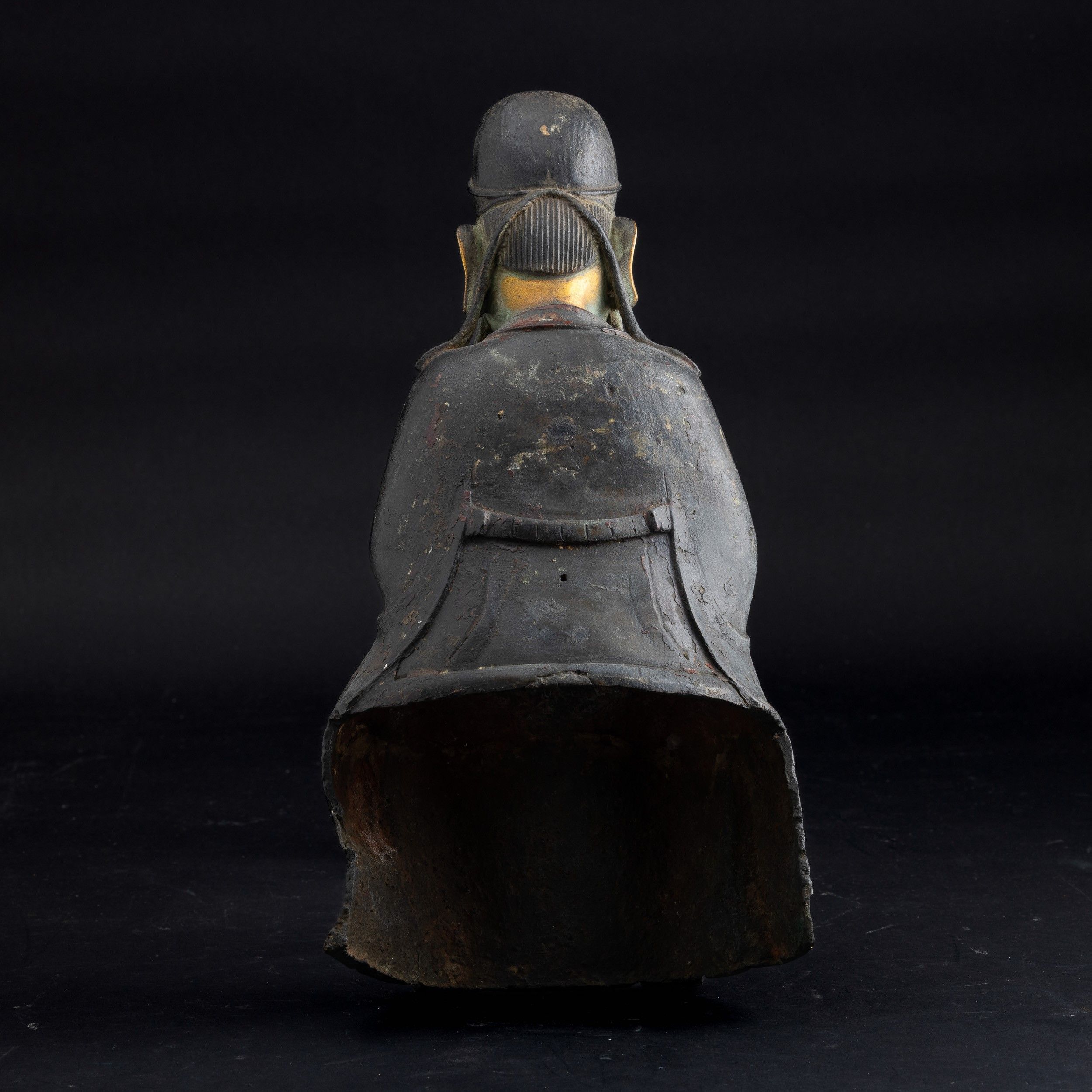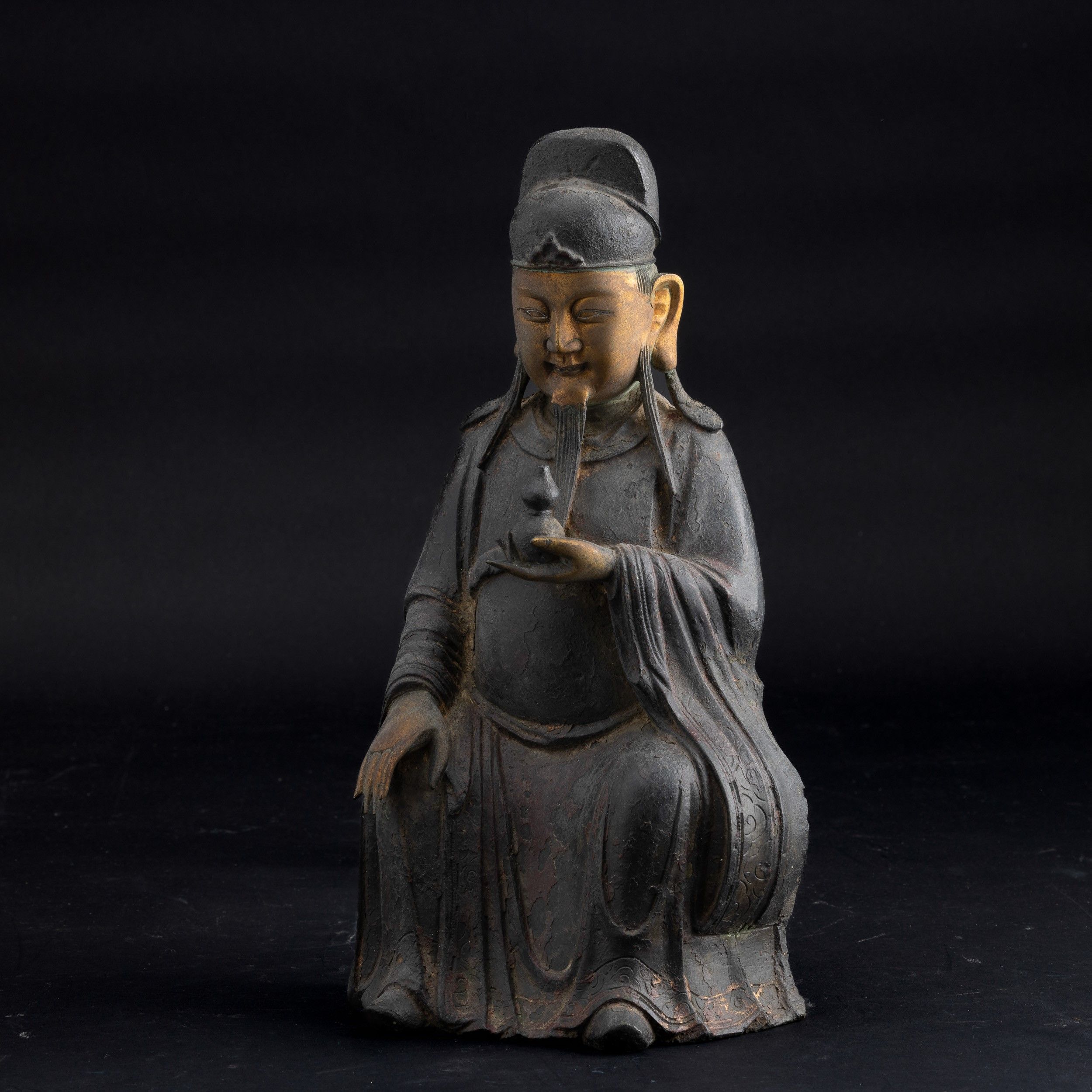 Figura di dignitario in bronzo con tracce di policromia e parzialmente dorato a [..]