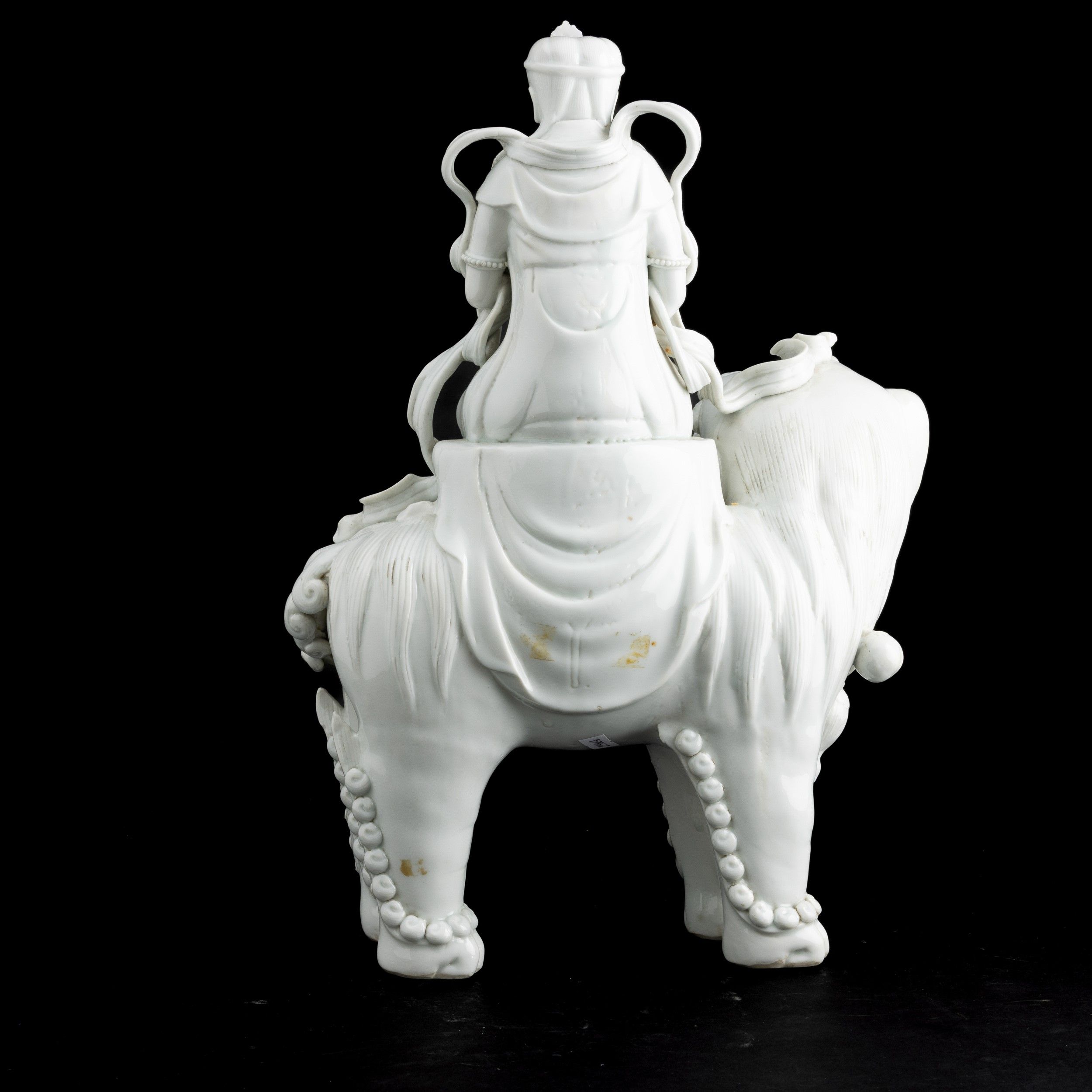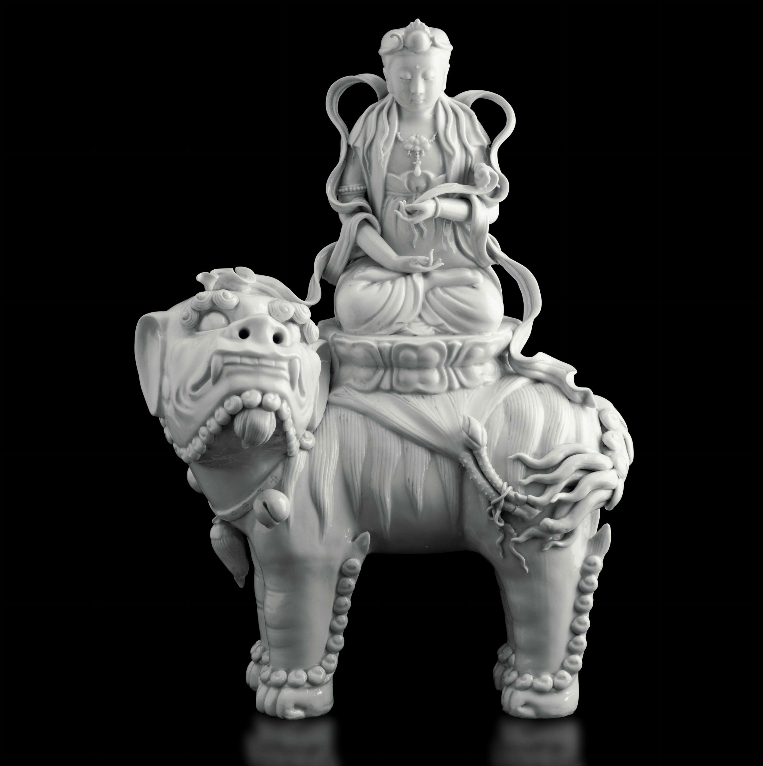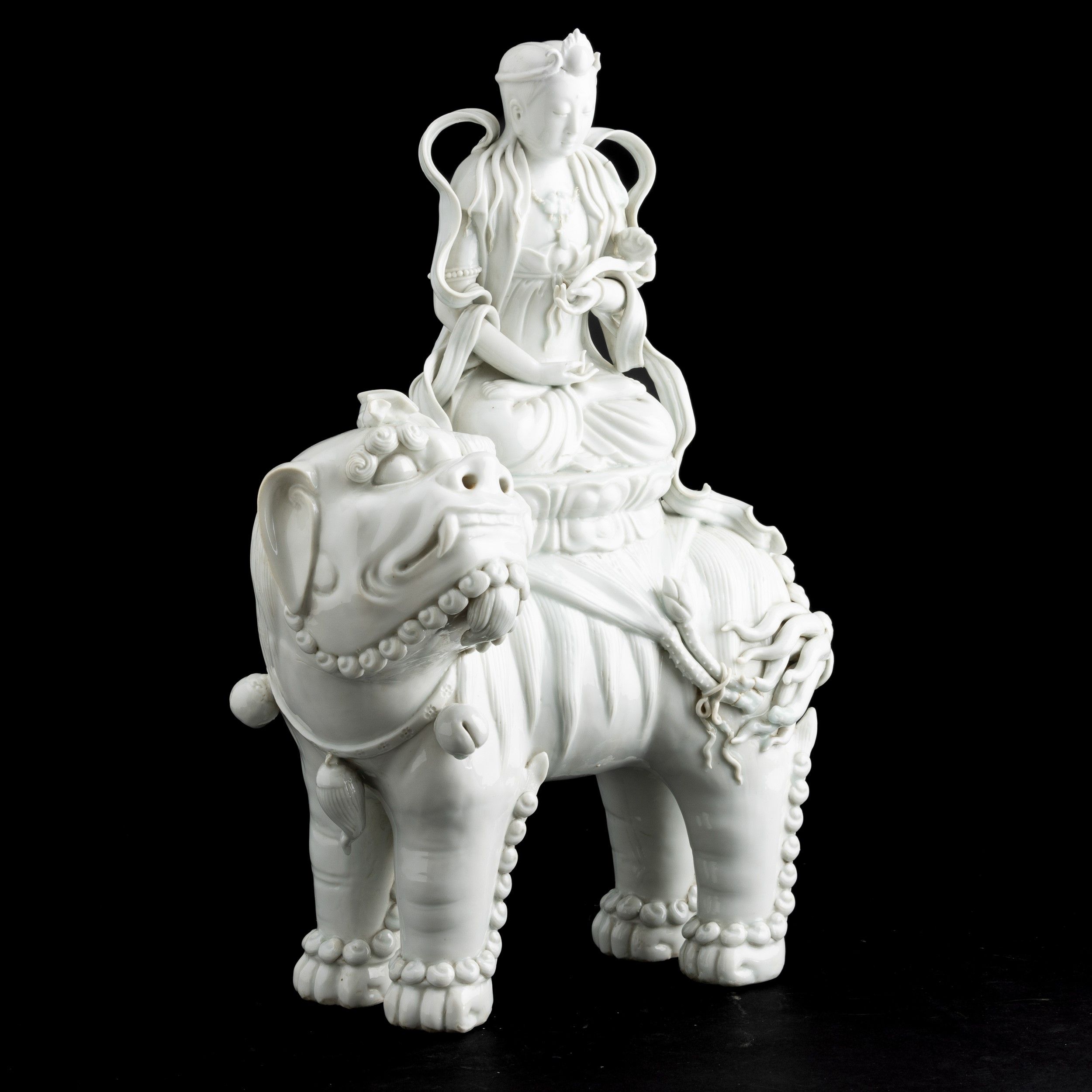 Figura di Guaniyn assisa su drago in porcellana Blanc de Chine, Cina, Dinastia Qing, [..]