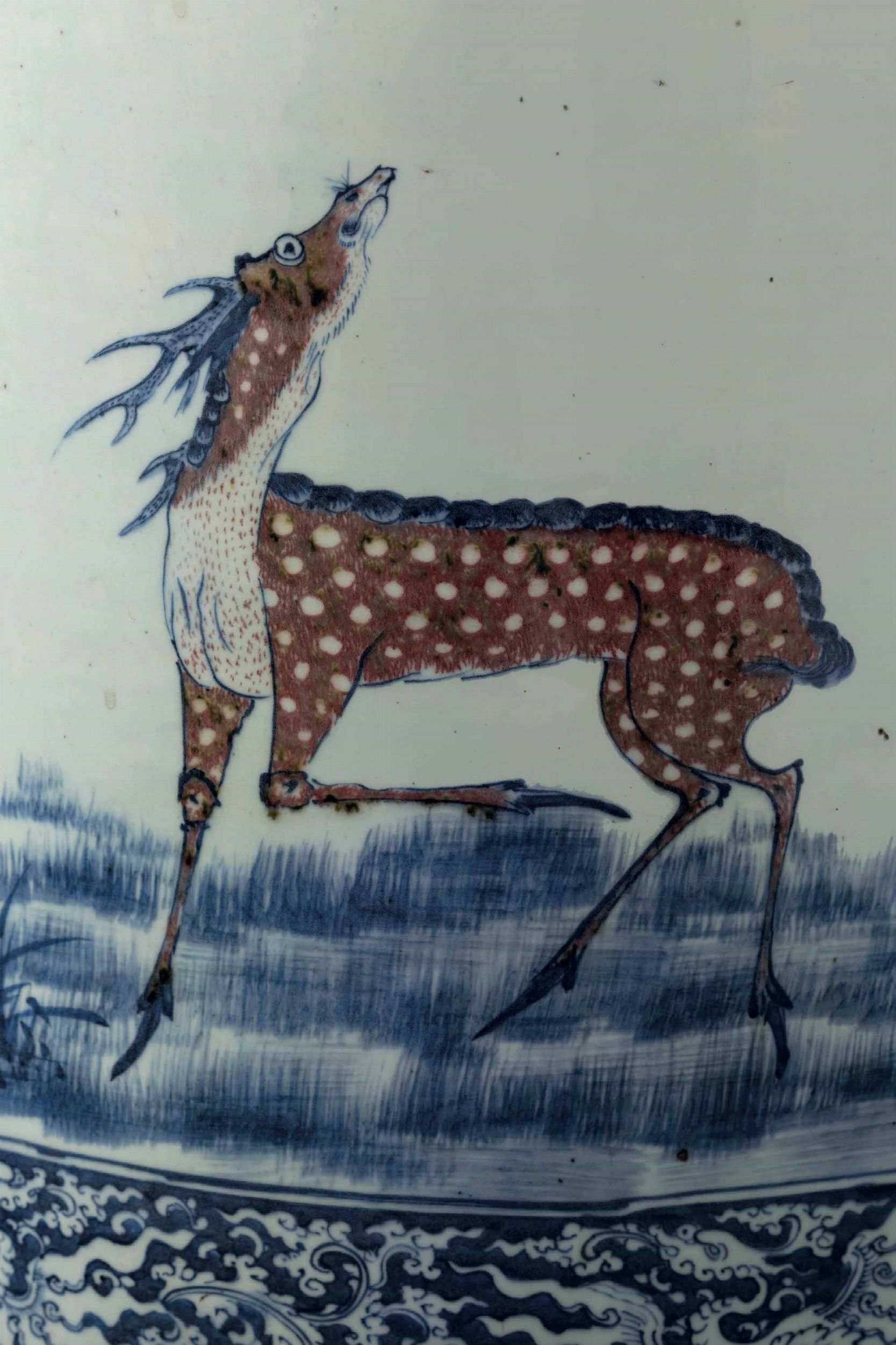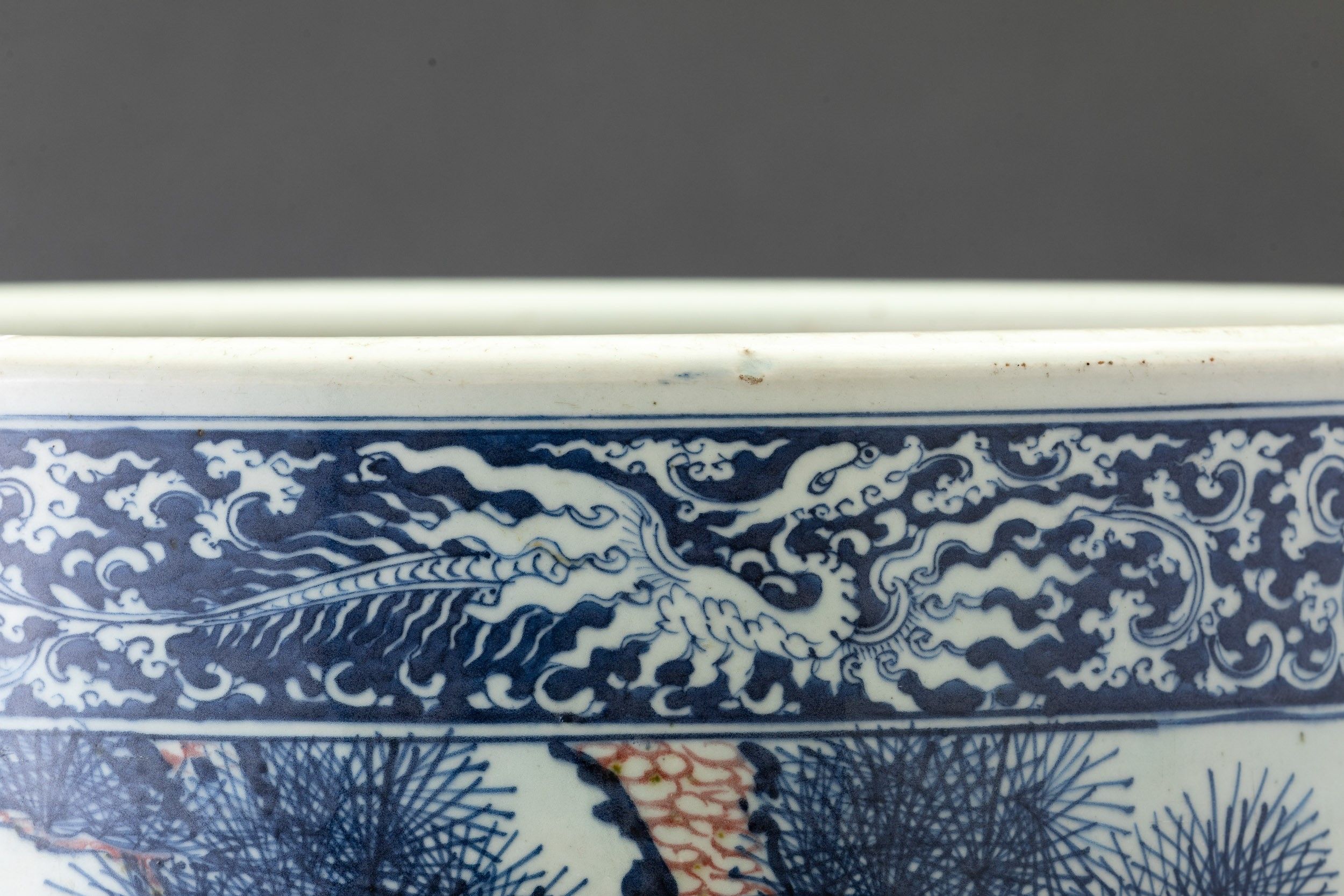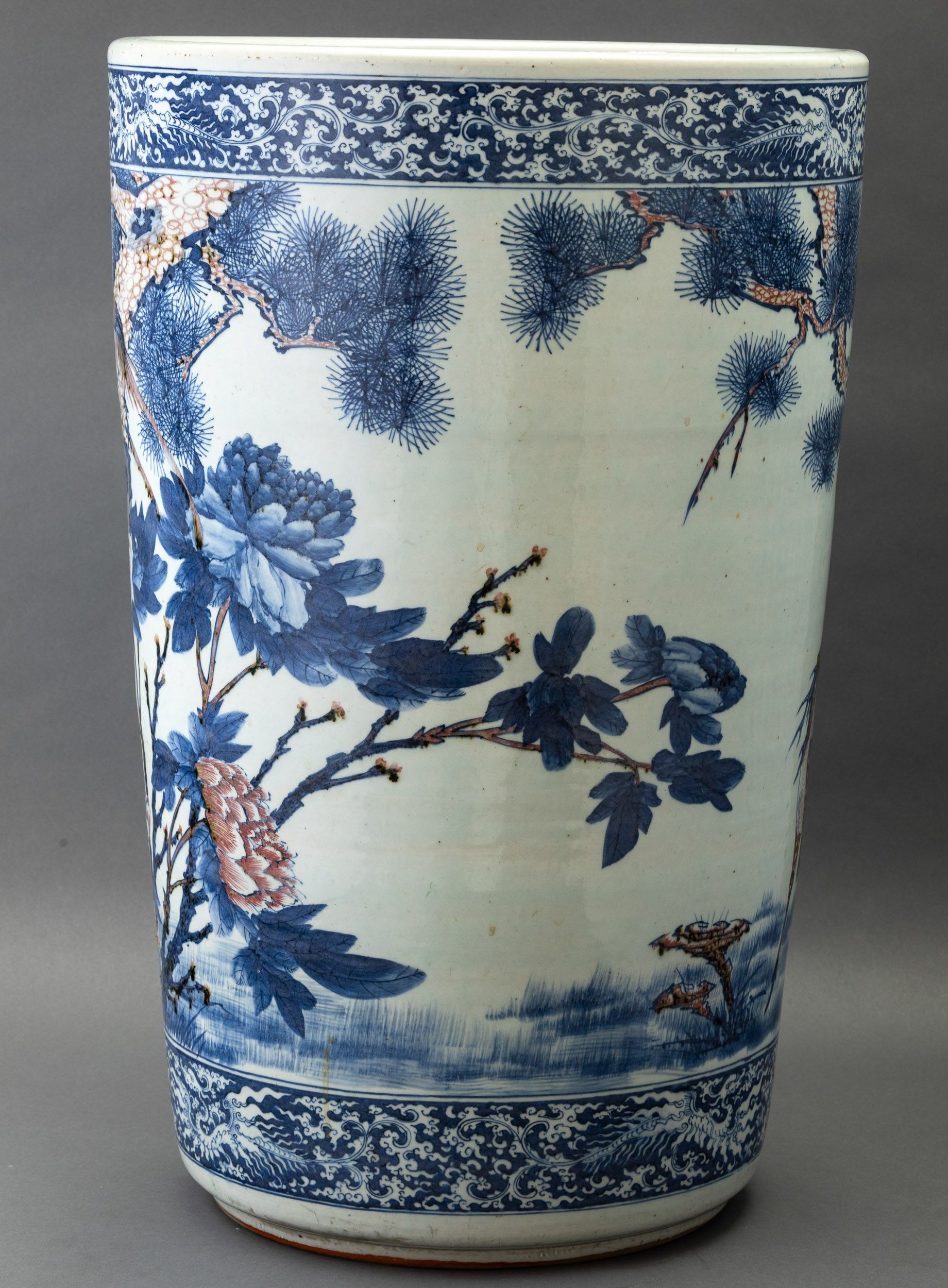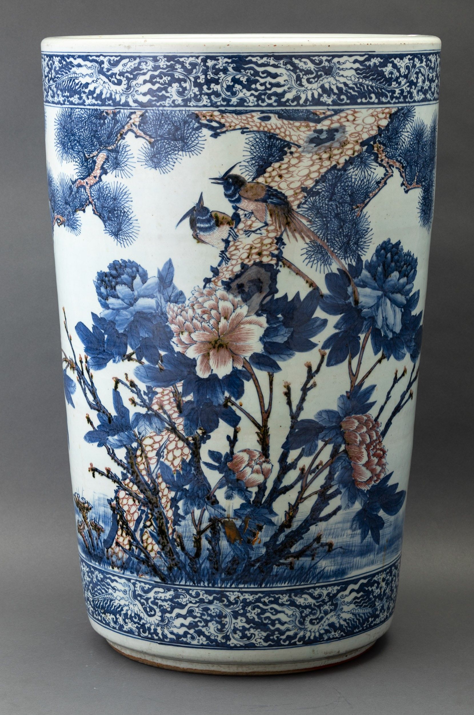 Grande giardiniera in porcellana a decoro blu e rosso ferro sotto smalto con raffigurazione [..]