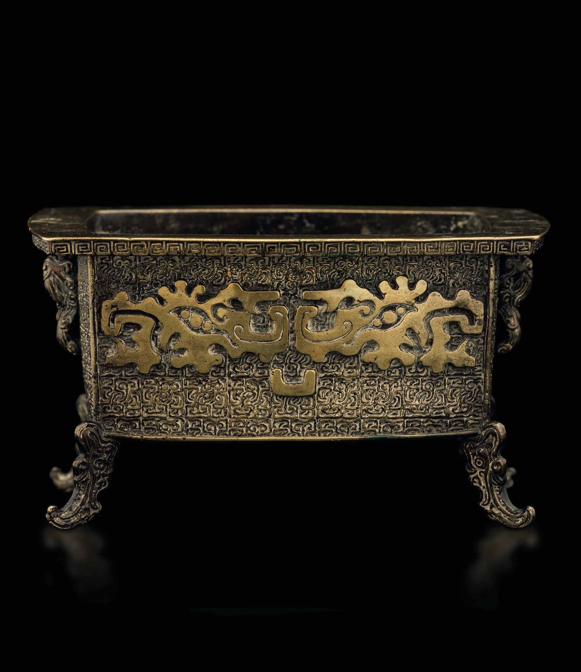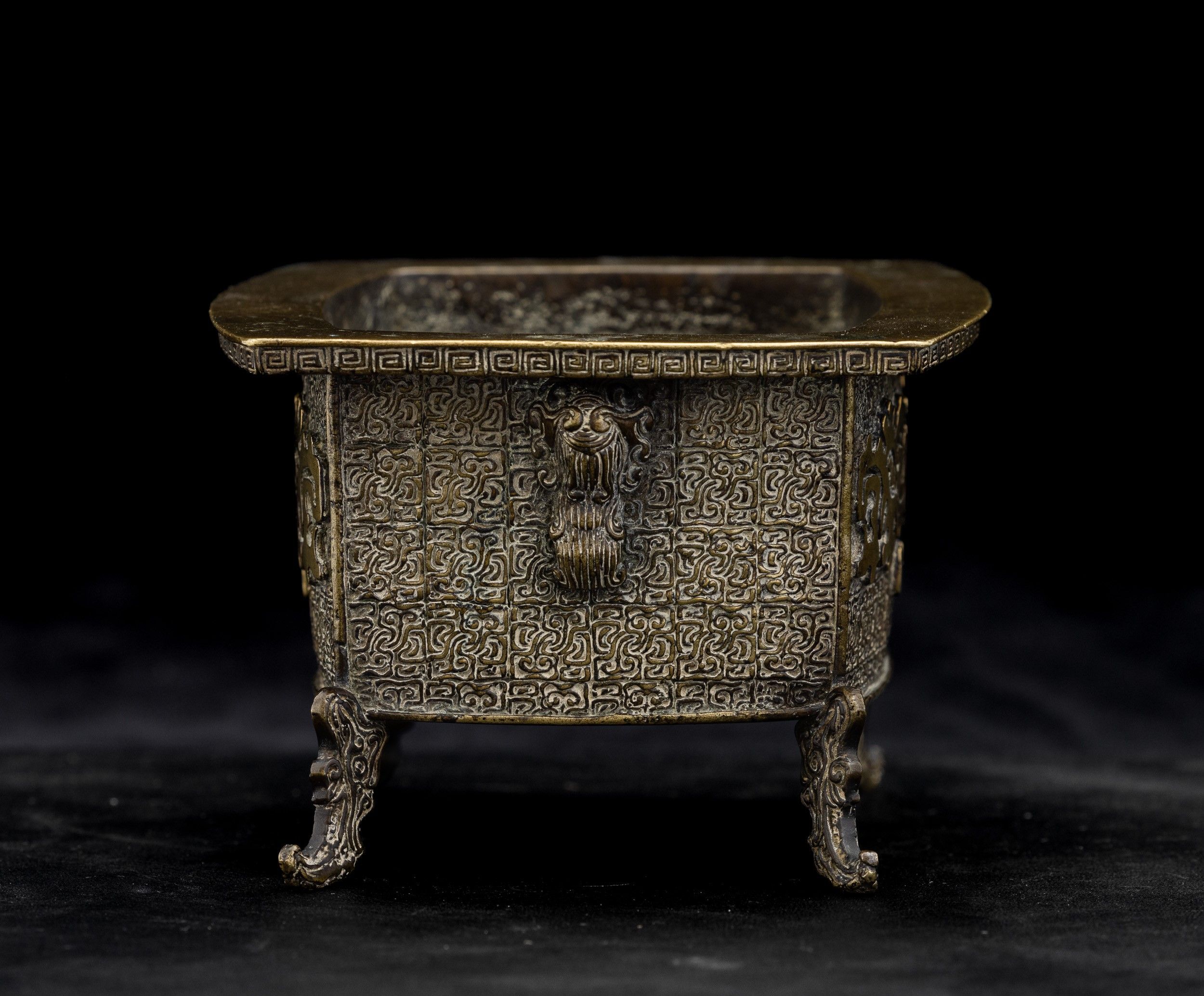 Incensiere in bronzo con decori a maschere Taotie, Cina, Dinastia Qing, XVIII se [..]