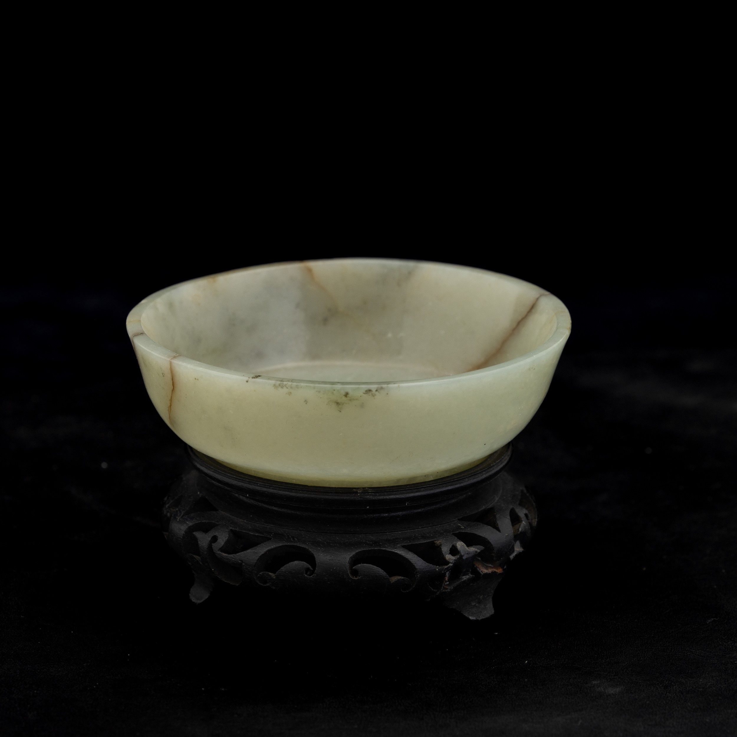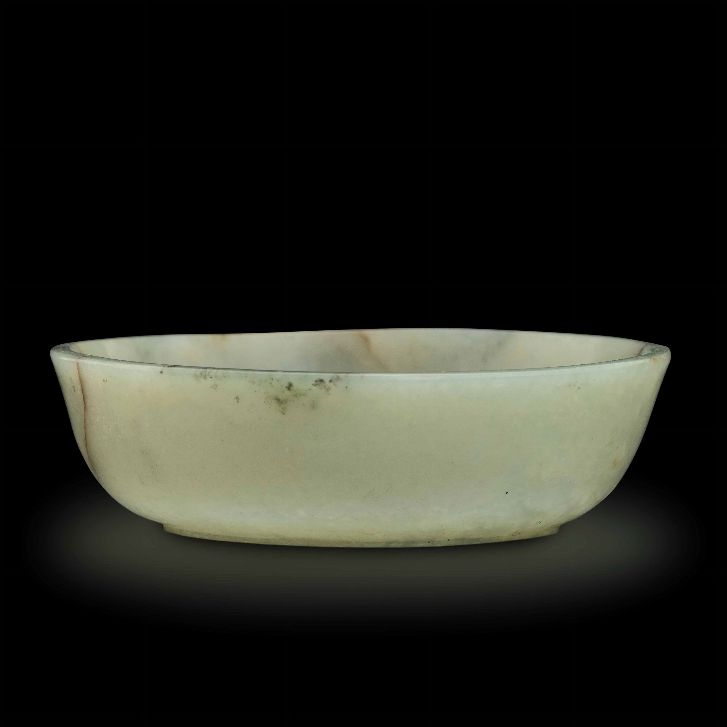 Piccola ciotola scolpita in giada Celadon e russet, Cina, Dinastia Qing, XVIII s [..]