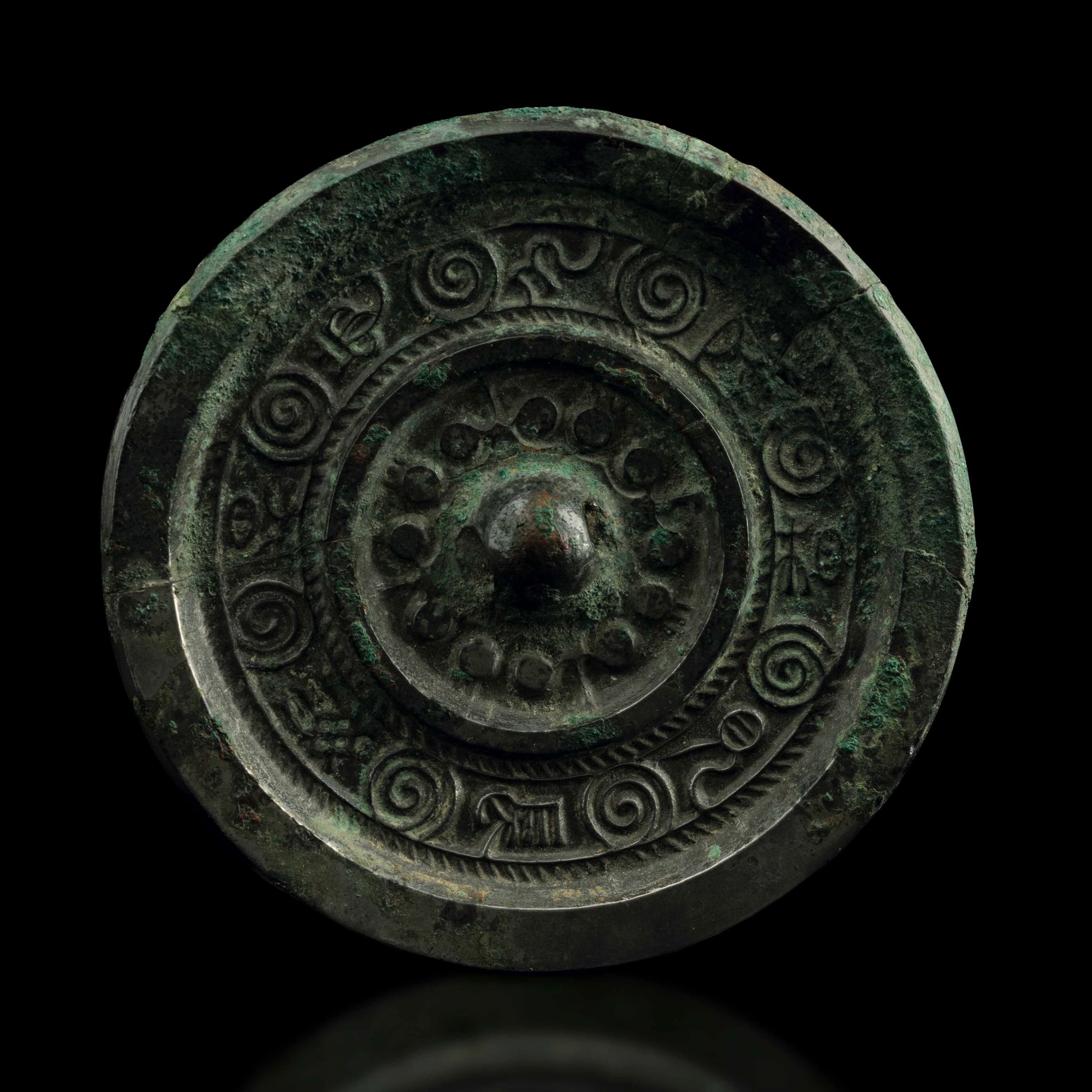Placca da specchio in bronzo con decori a rilievo d'ispirazione arcaica, Cina, Stati [..]