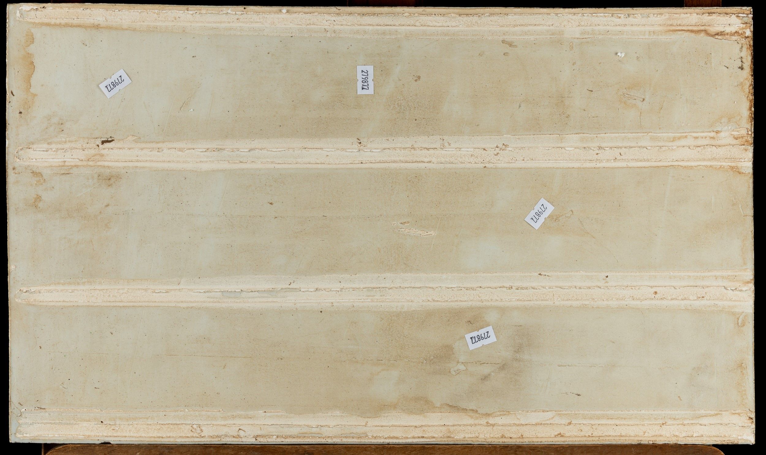 Placca in porcellana raffigurante villaggio con contadini, pescatori e iscrizione, [..]