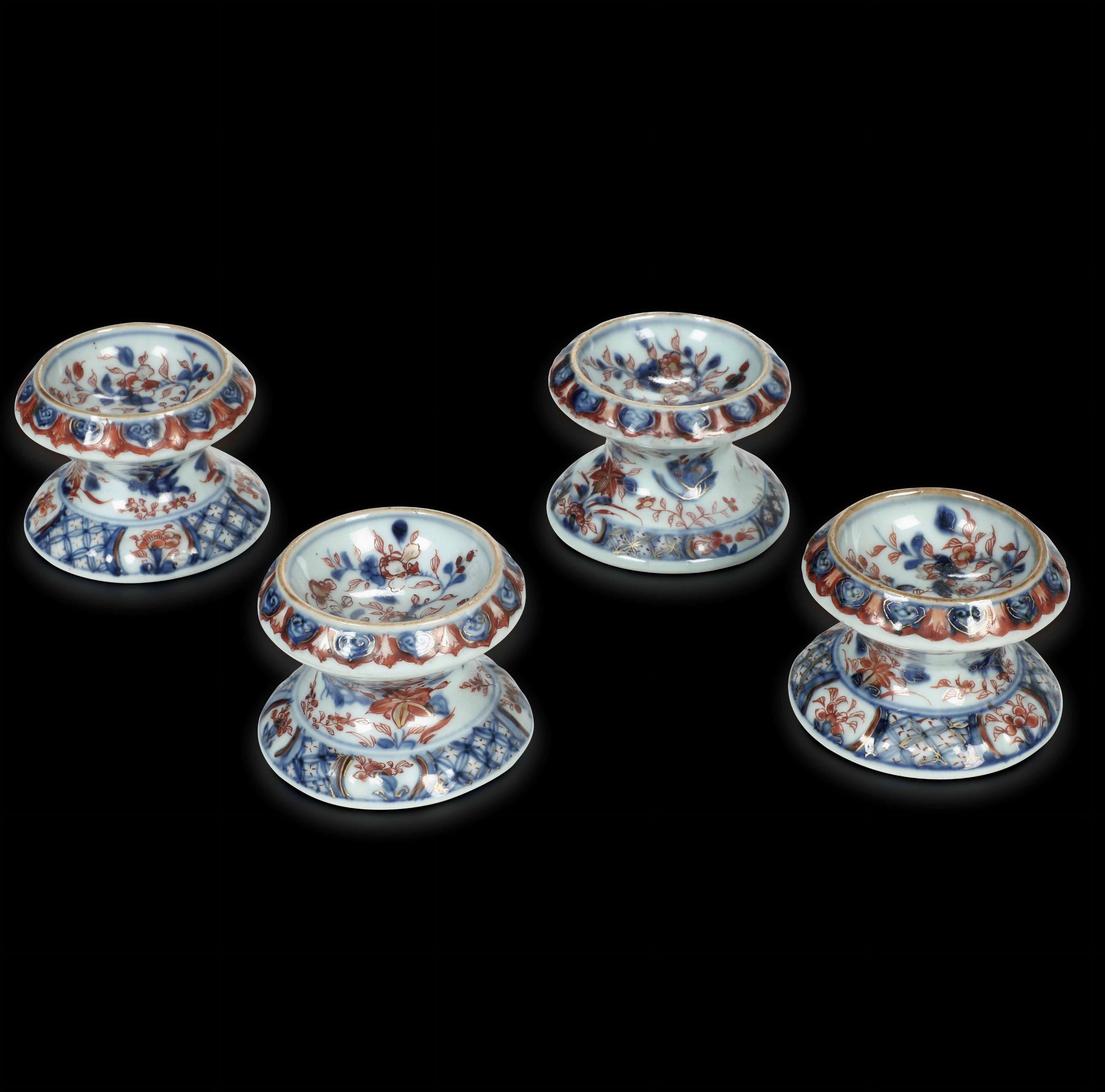 Quattro saliere in porcellana Imari con decori floreali, Cina, Dinastia Qing, epoca [..]