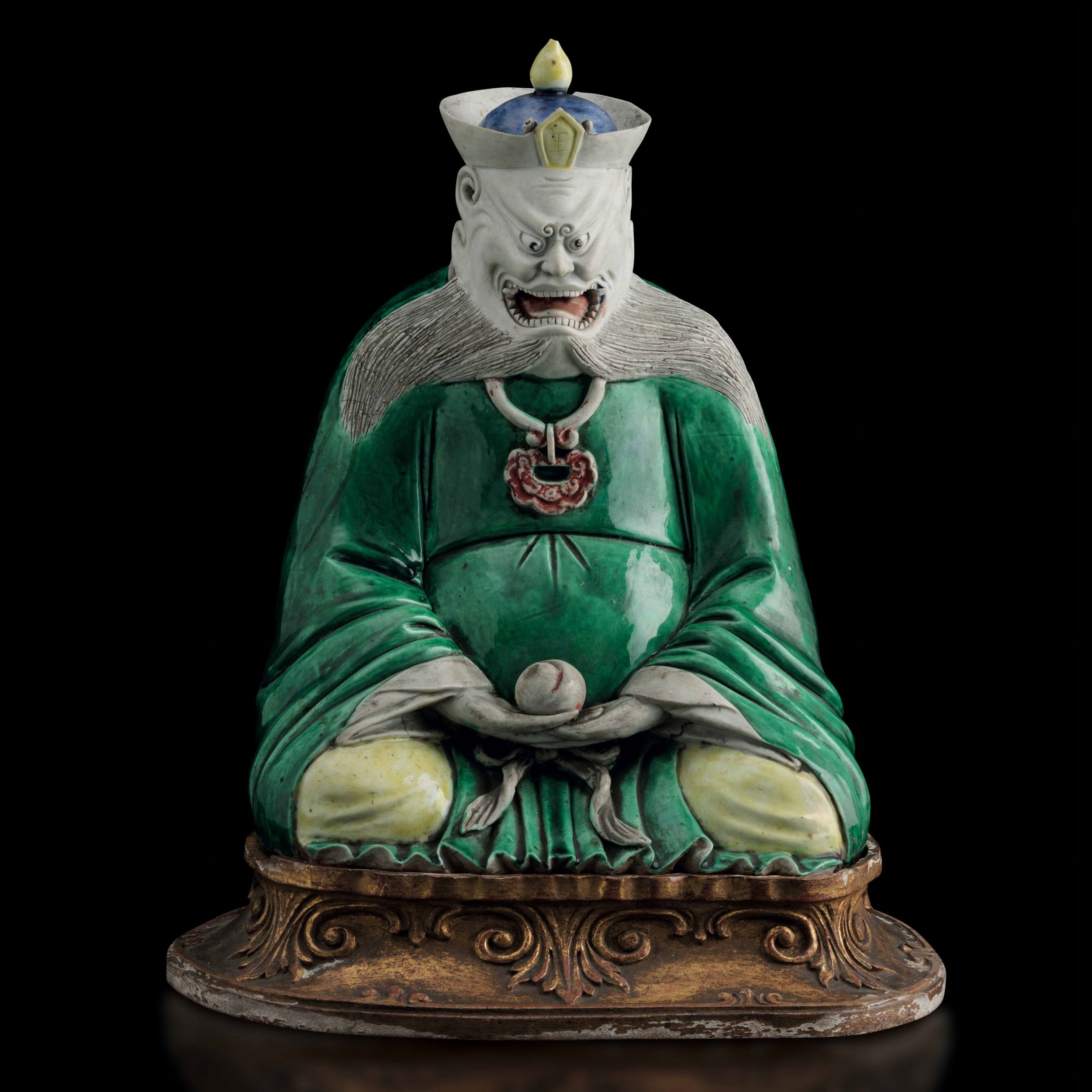 Rarissima figura di guardiano in biscuit invetriato nei toni della Famiglia Verde, [..]
