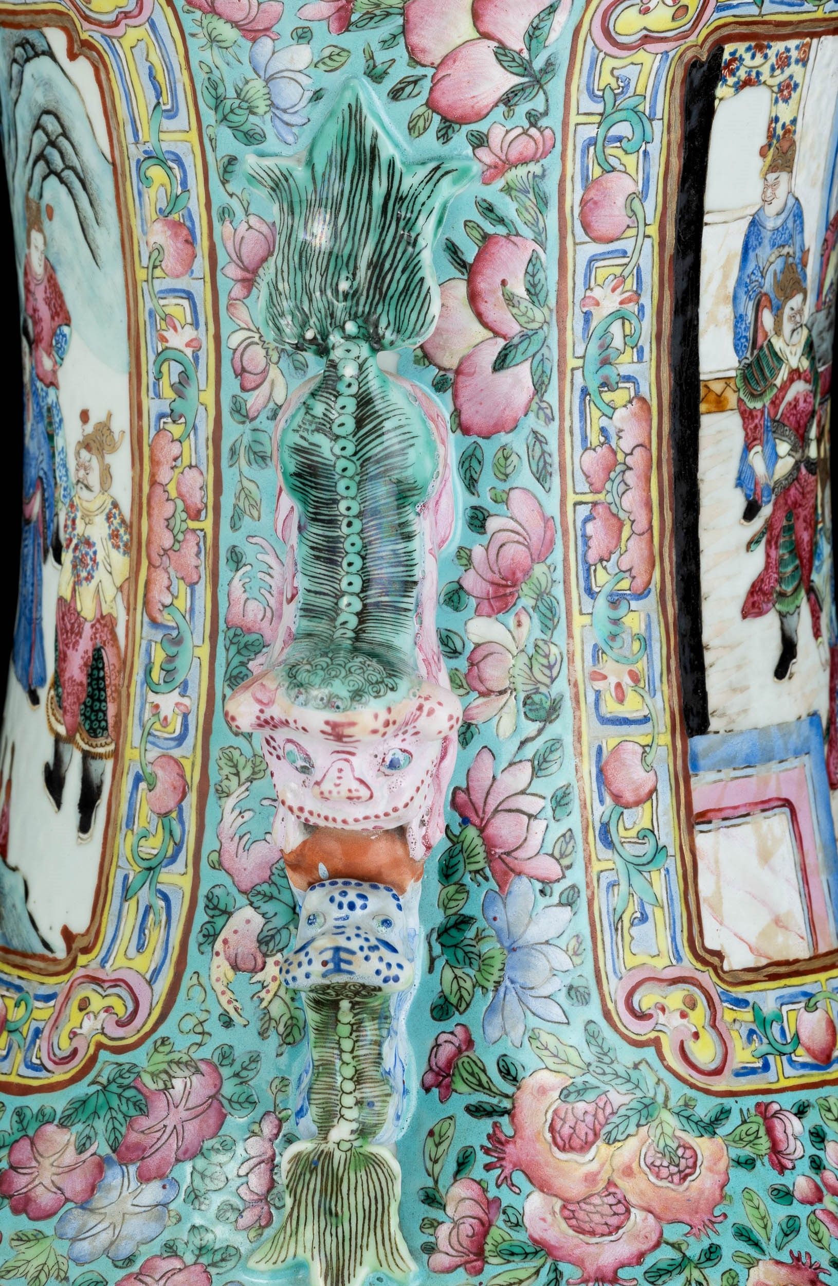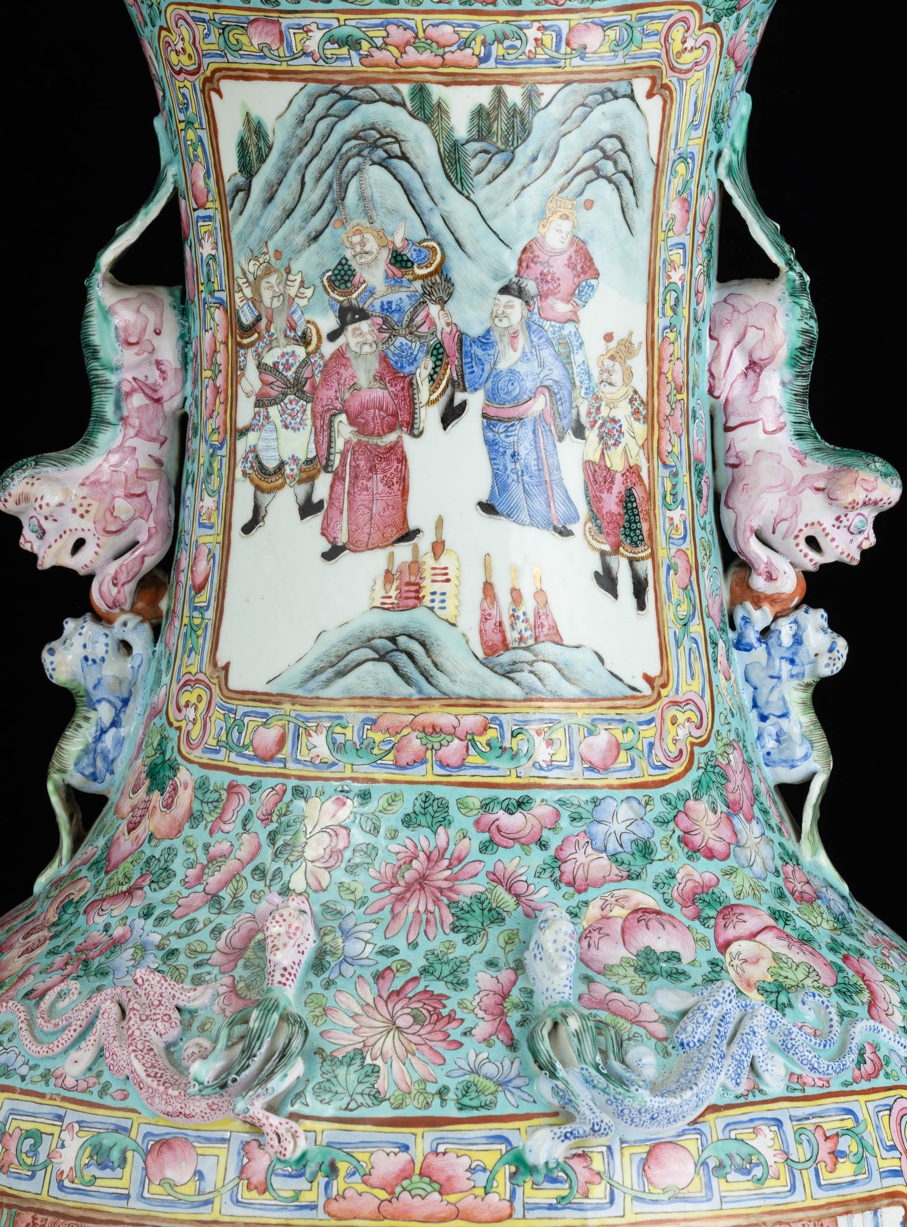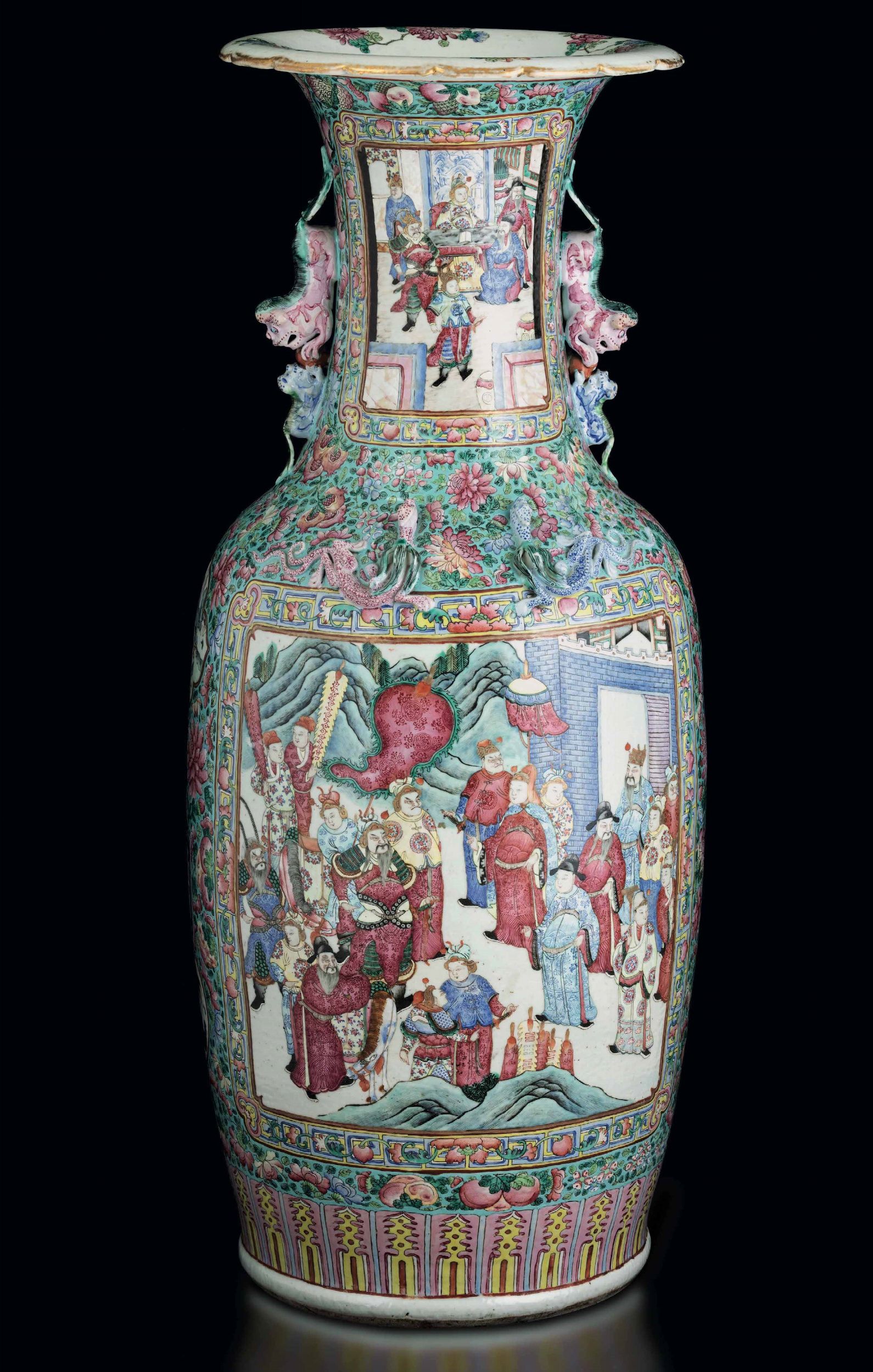 Vaso a balaustro in porcellana Famiglia Rosa con scene di vita comune entro riserve, [..]