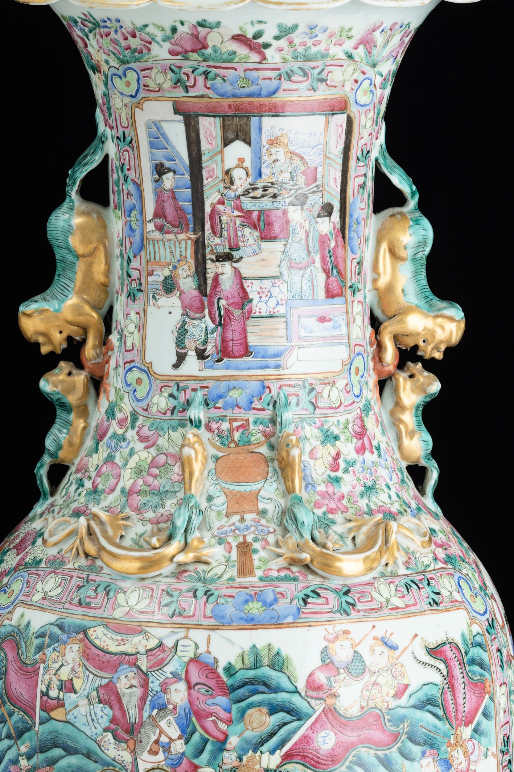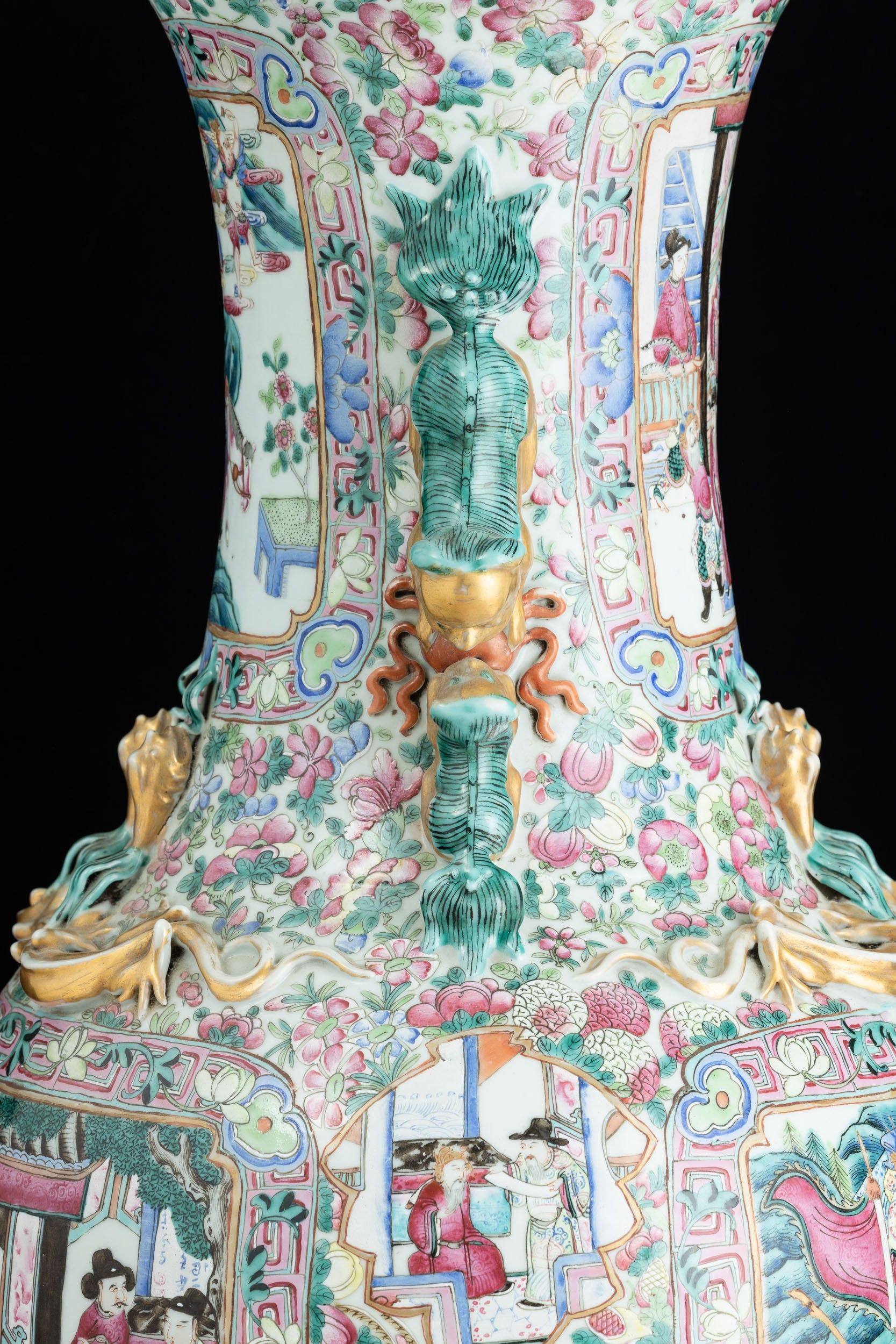 Vaso a balaustro in porcellana Famiglia Rosa con figure di draghetti a rilievo, [..]
