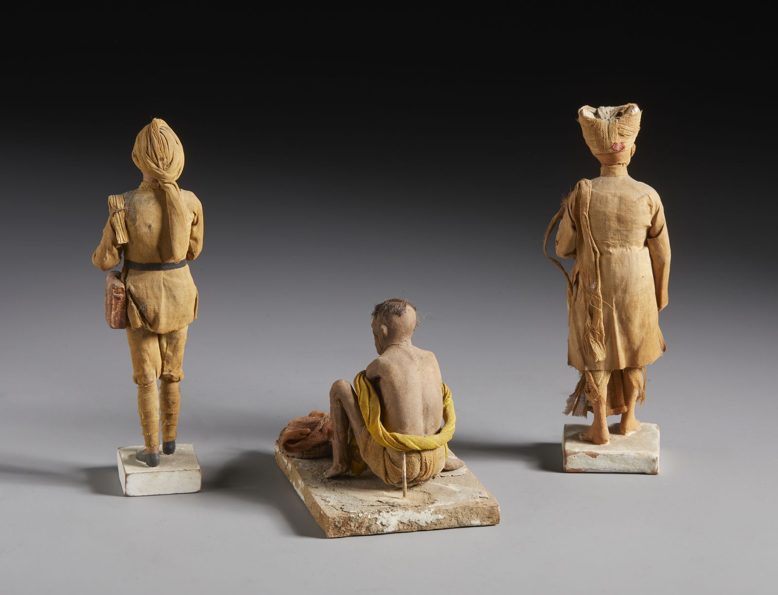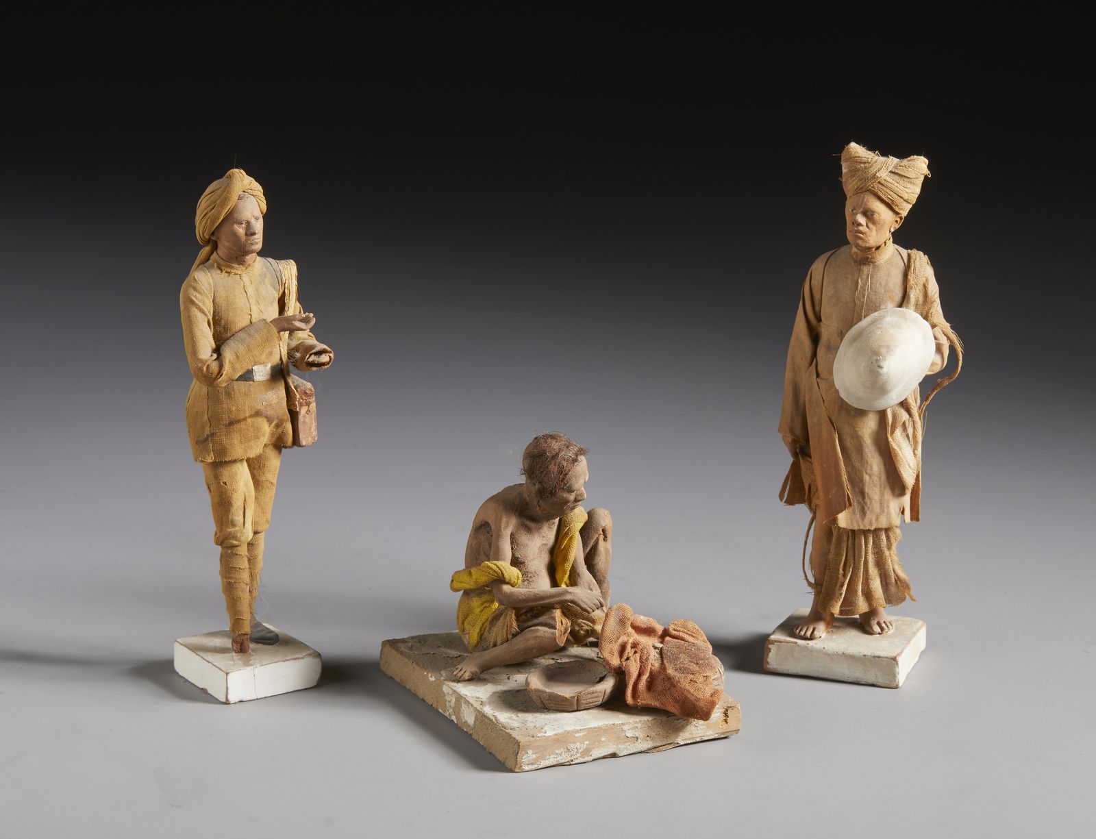 Cinque figure raffiguranti personaggi dell'India britannica in terracotta e tess [..]
