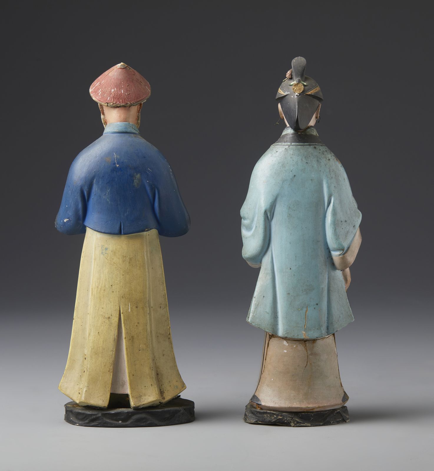 Coppia di magot in terracotta dipinta in policromia raffiguranti due dignitari c [..]