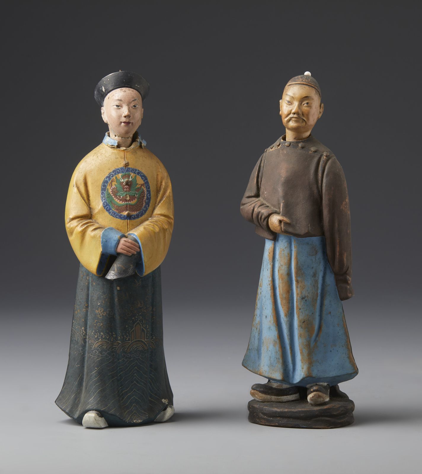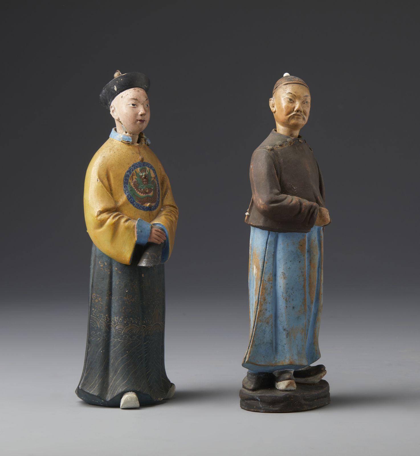 Coppia di magot in terracotta dipinta in policromia raffiguranti due dignitari c [..]