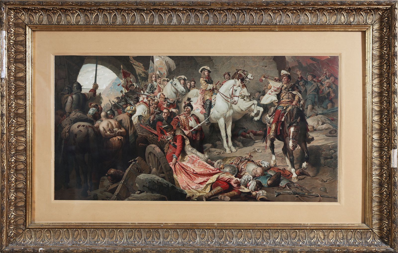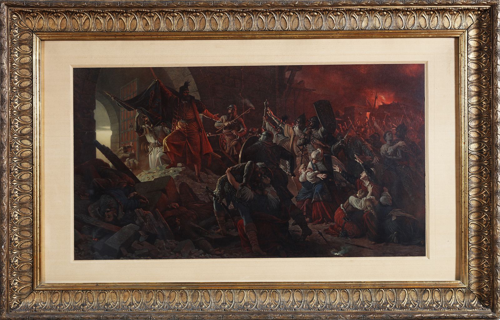Coppia di stampe raffigurante scene dell'assedio di Buda