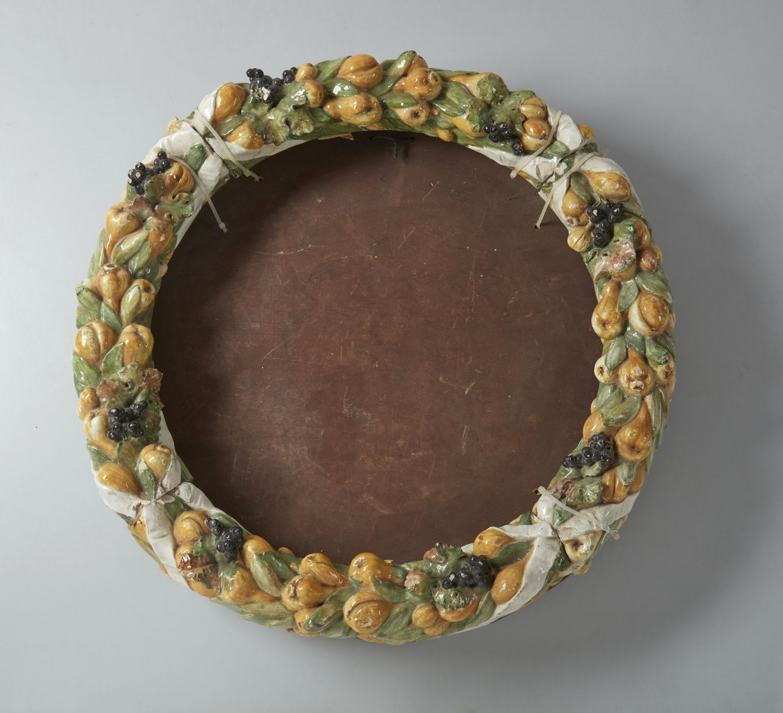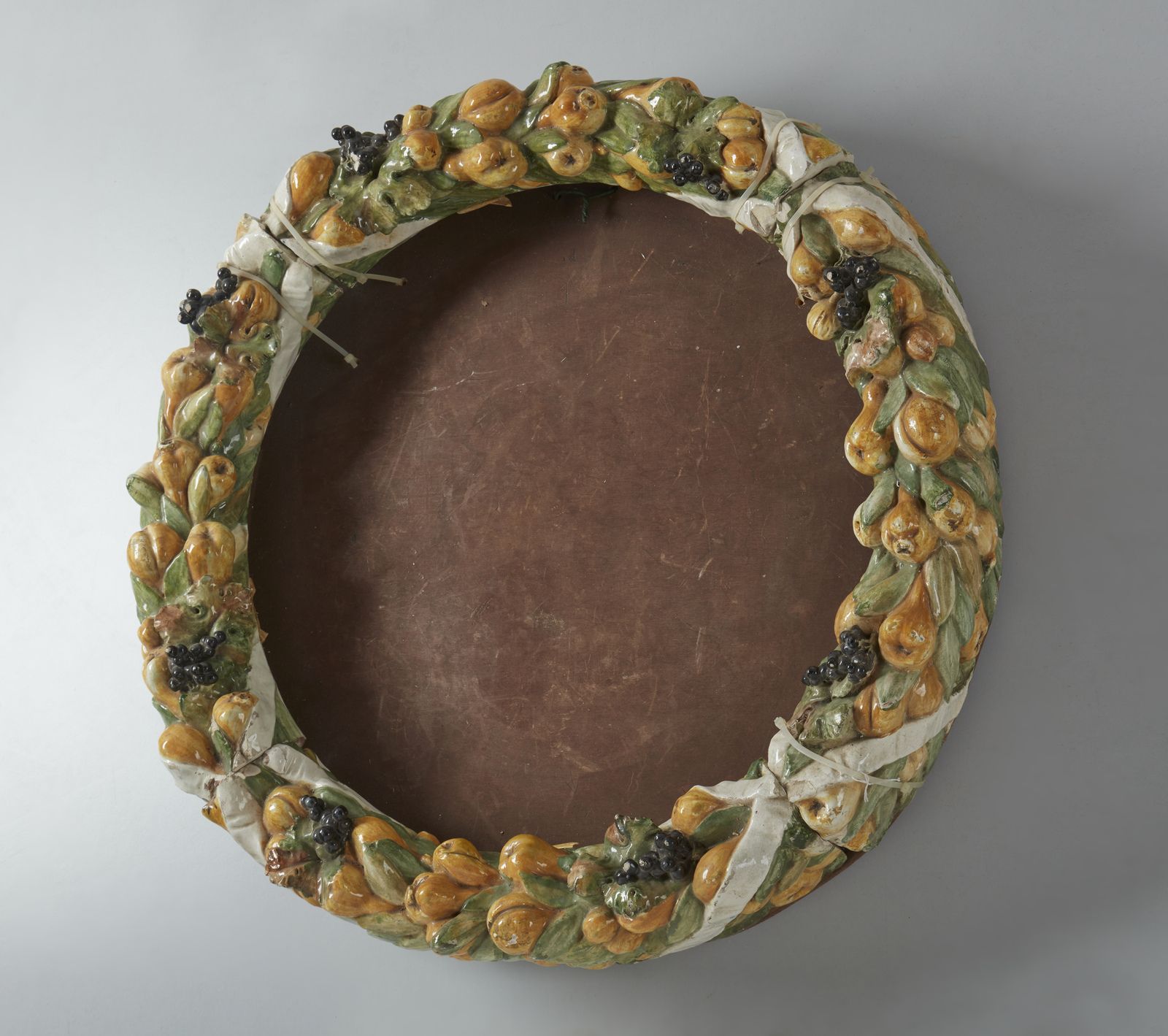 Cornice con ghirlanda di frutta in terracotta invetriata nello stile della bottega [..]