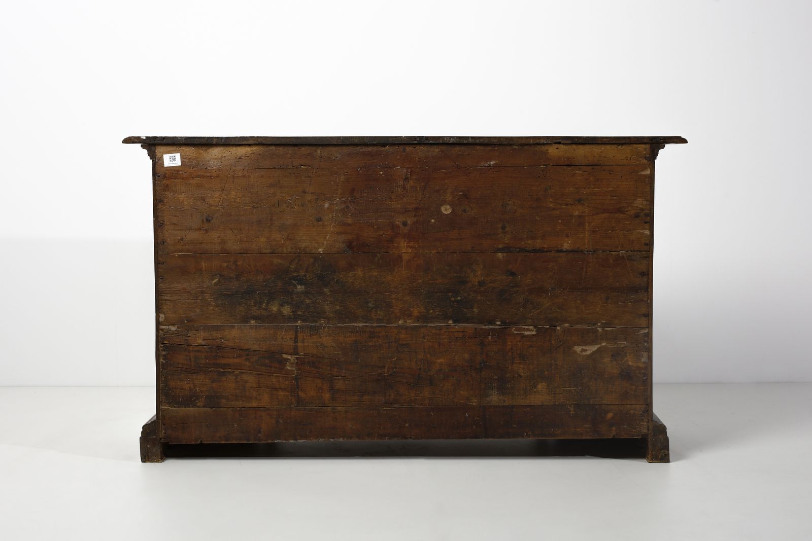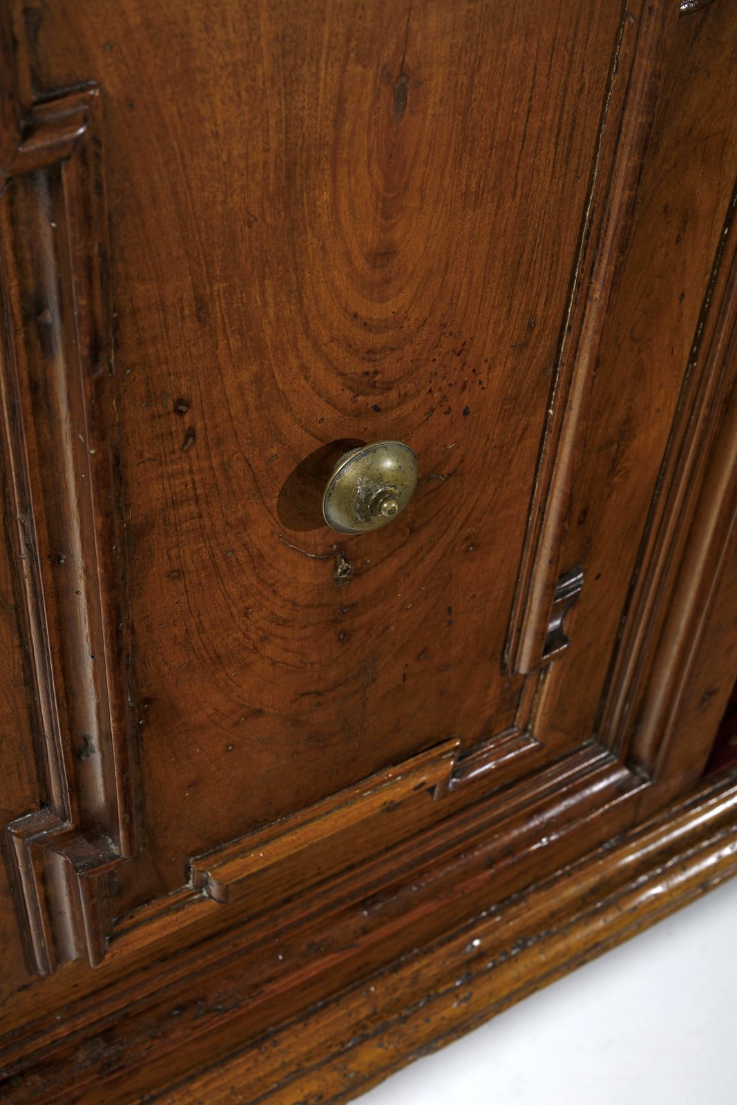 Credenza in legno di noce a due ante, fronte e fianchi pannellati e riquadrati, [..]