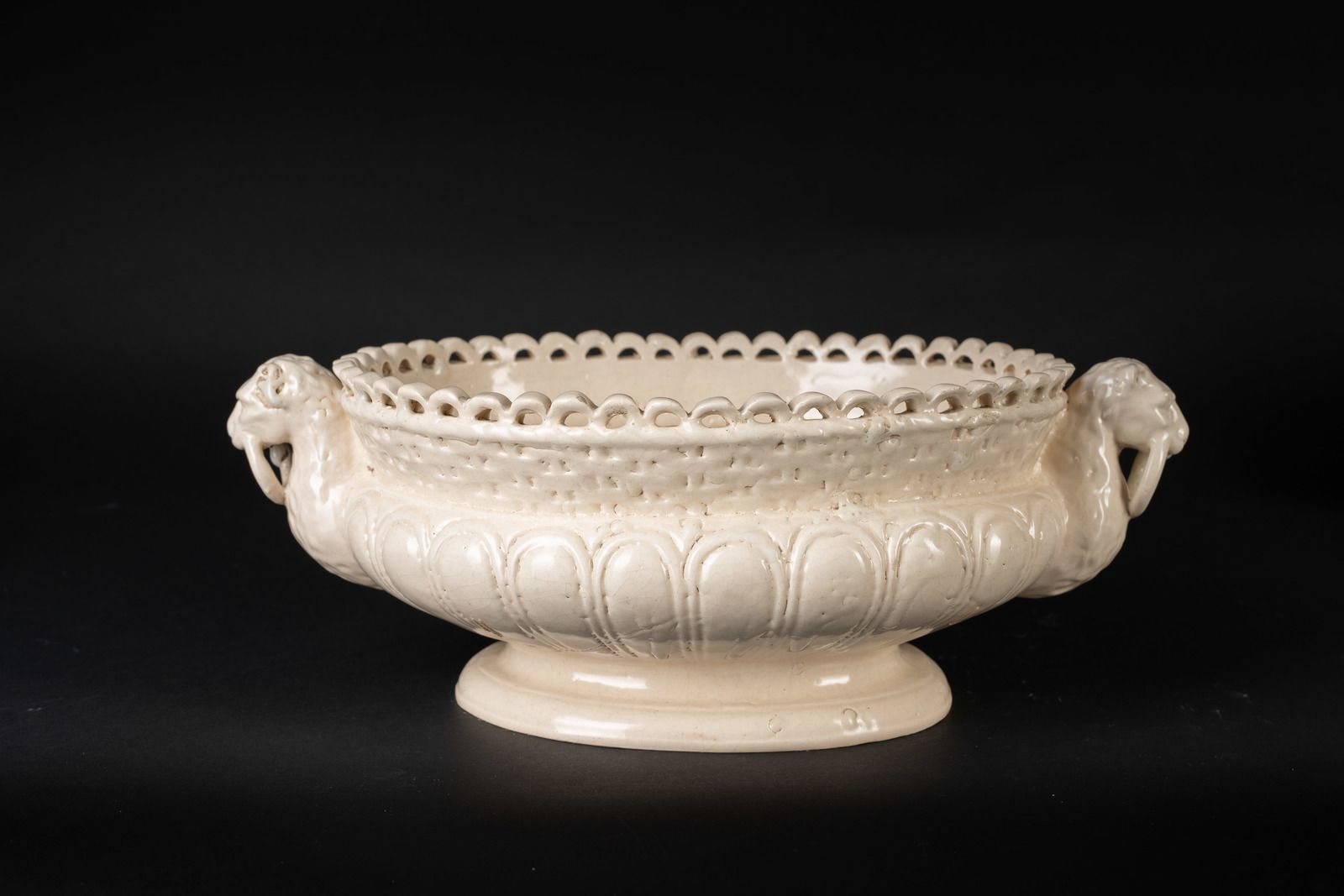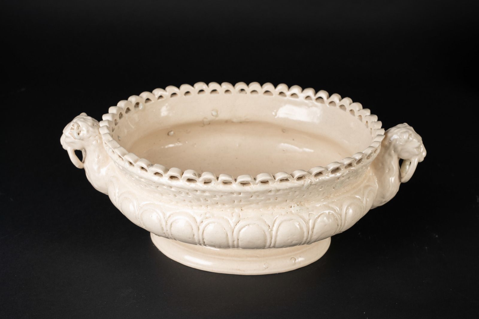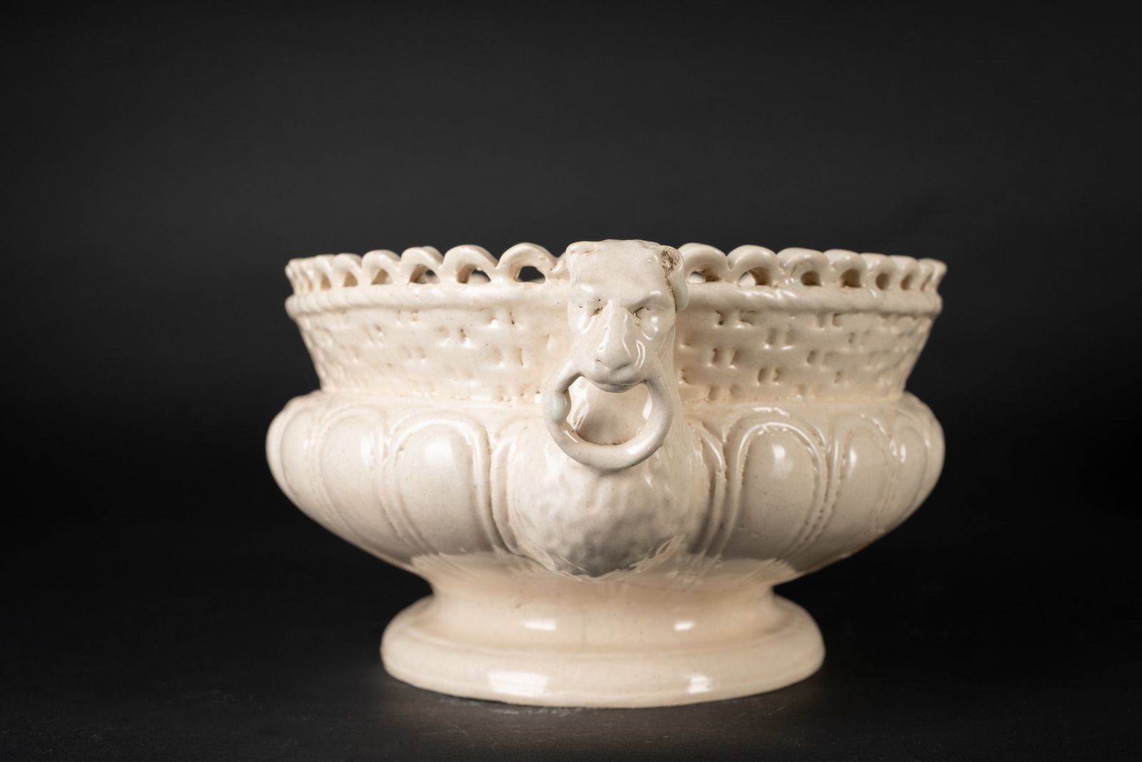 Fruttiera in terraglia con manici leonini