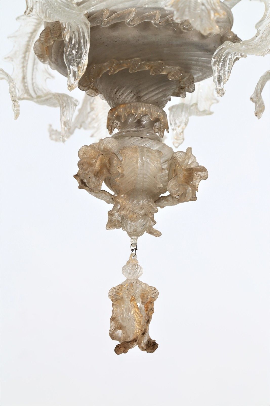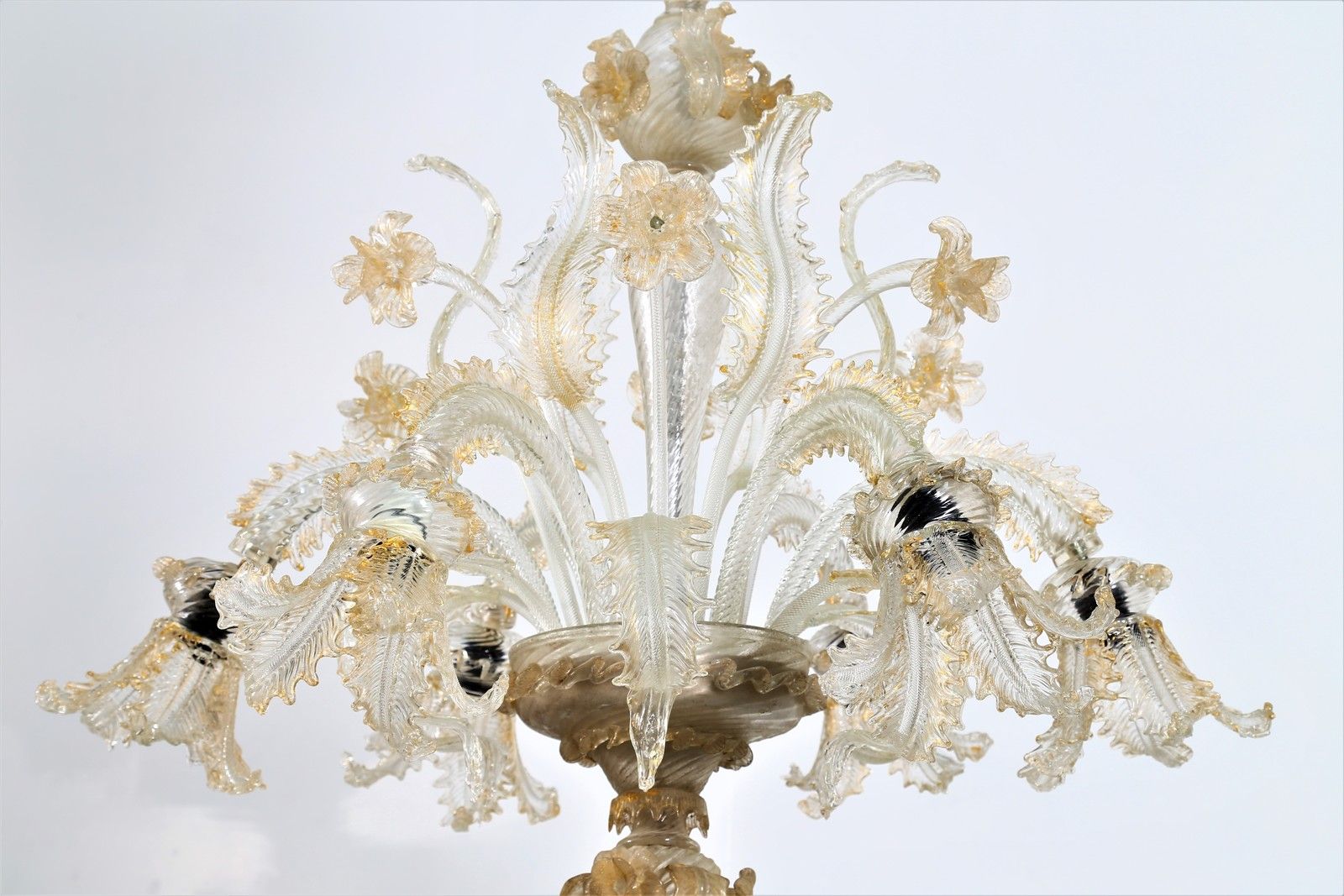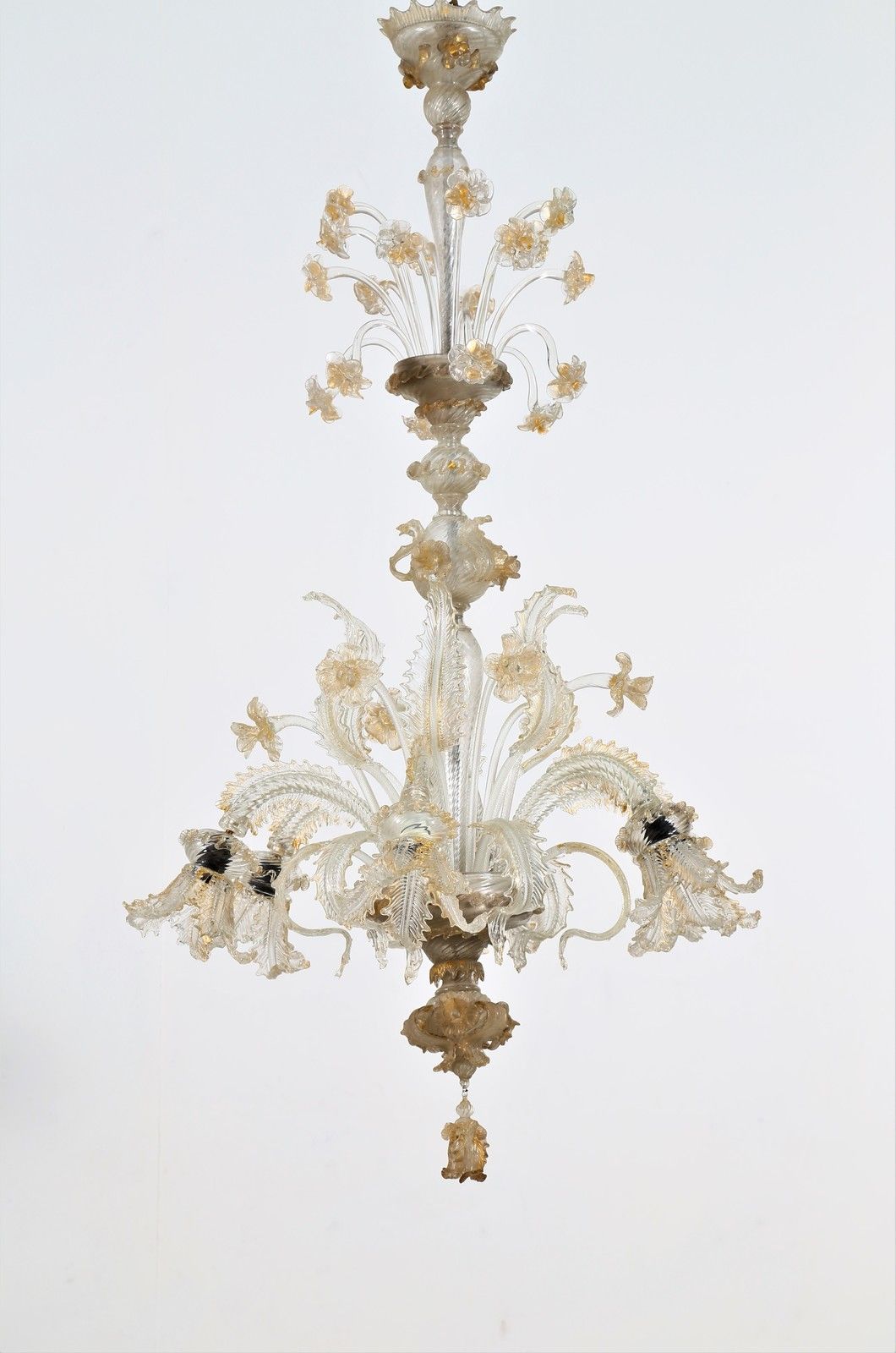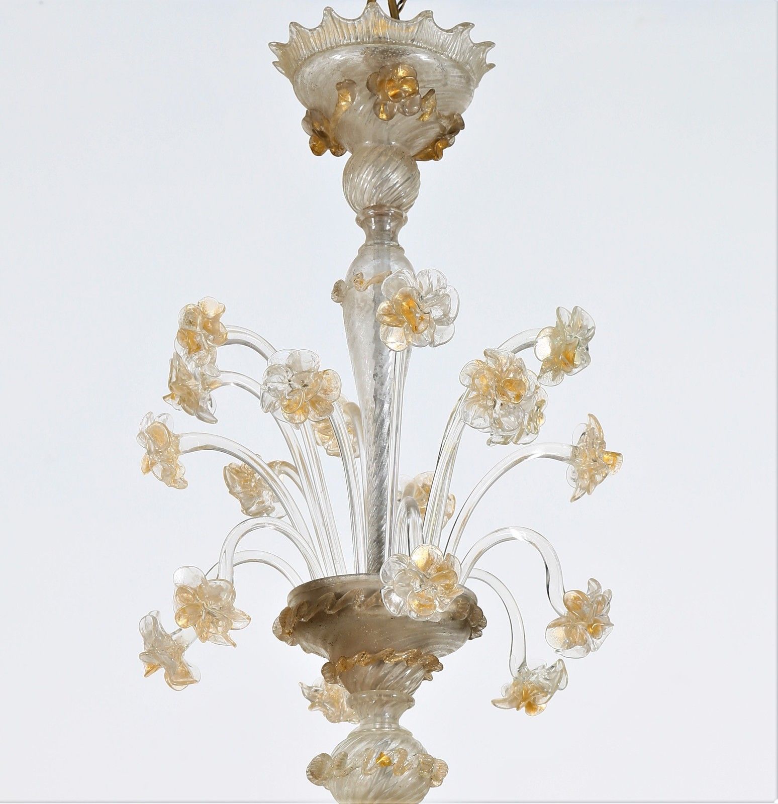 Lampadario Ca' Rezzonico a sei luci in cristallo dorato e decorato con fiori in [..]