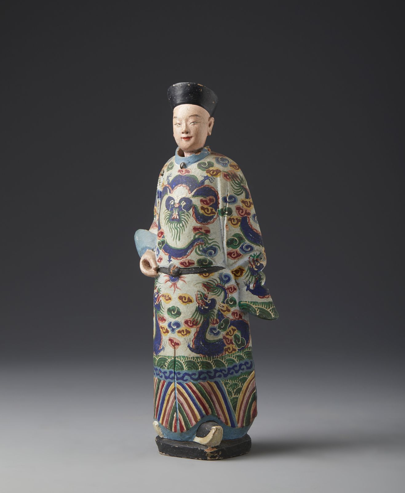 Magot in terracotta dipinta in policromia raffigurante un dignitario cinese