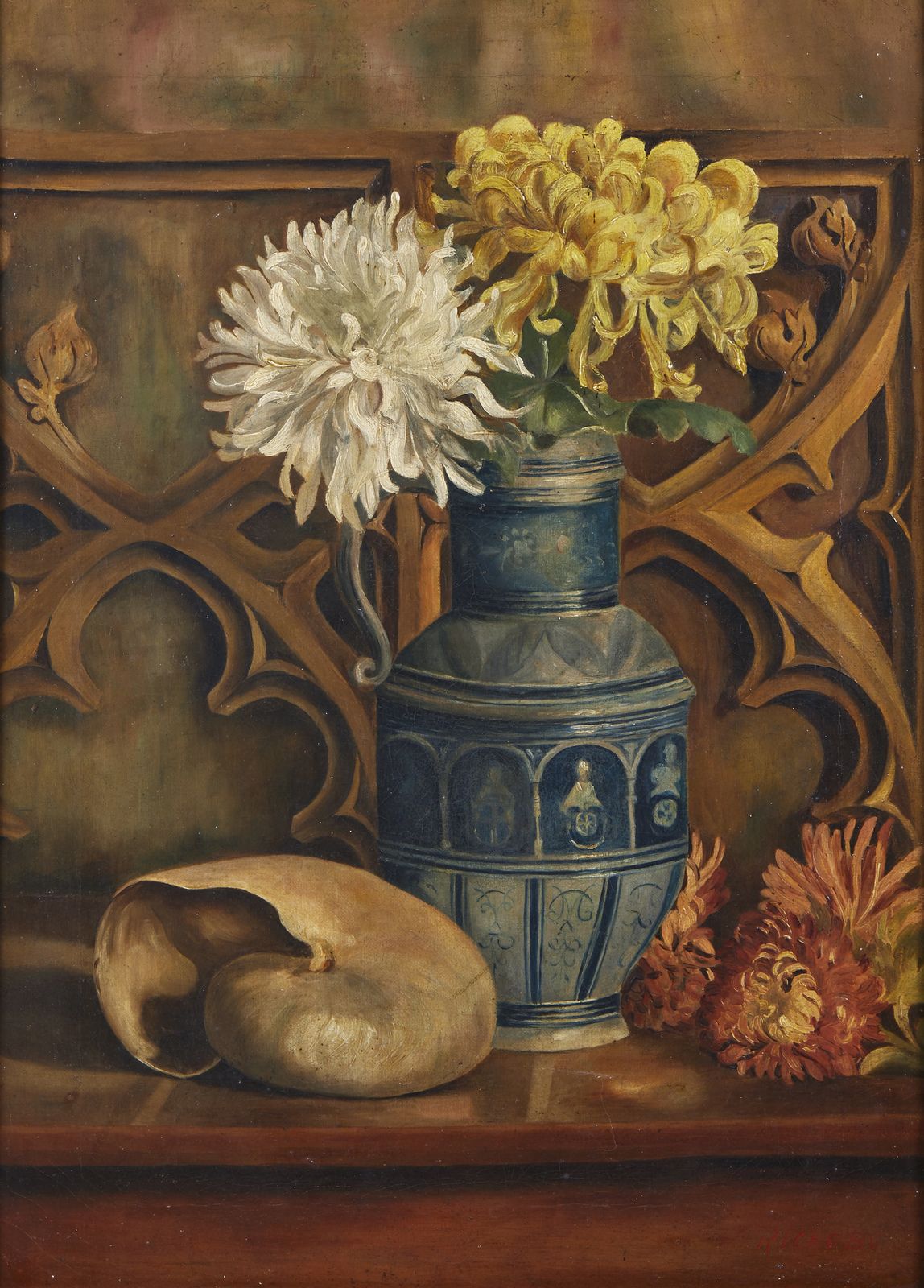 Natura morta con vaso di fiori e nautilus
