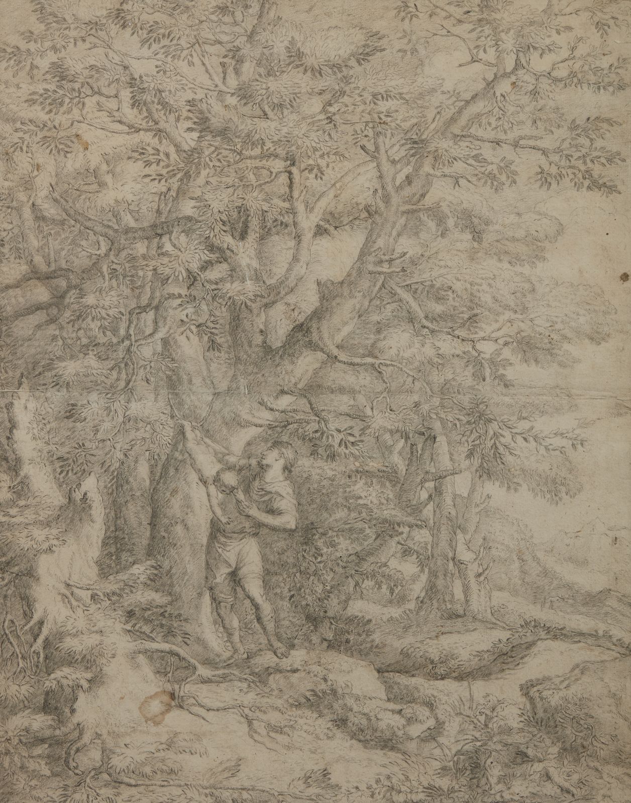 Paesaggio boschivo con personaggi