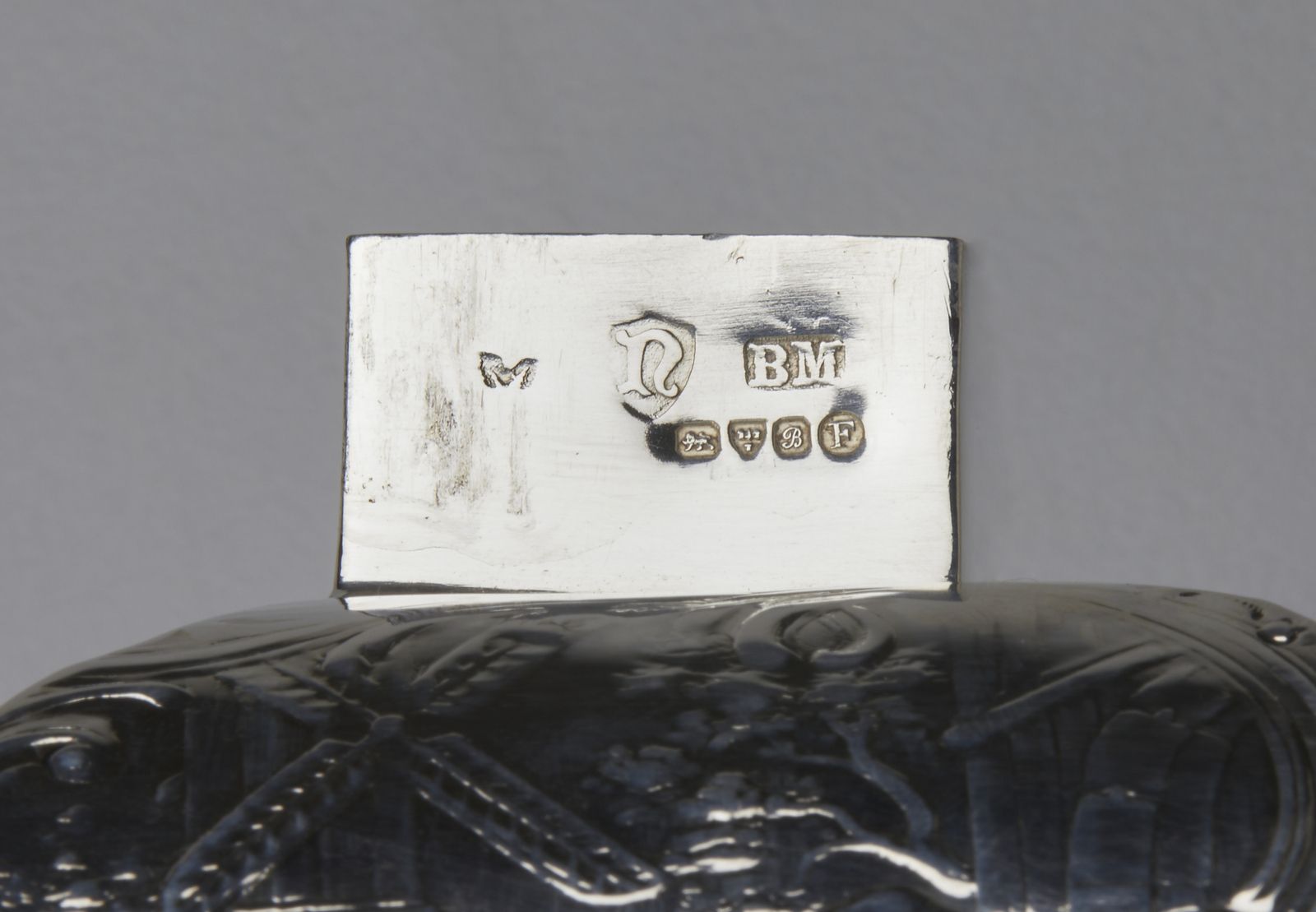 Piccolo contenitore bombato in argento sbalzato in forma di potiche orientale, con [..]