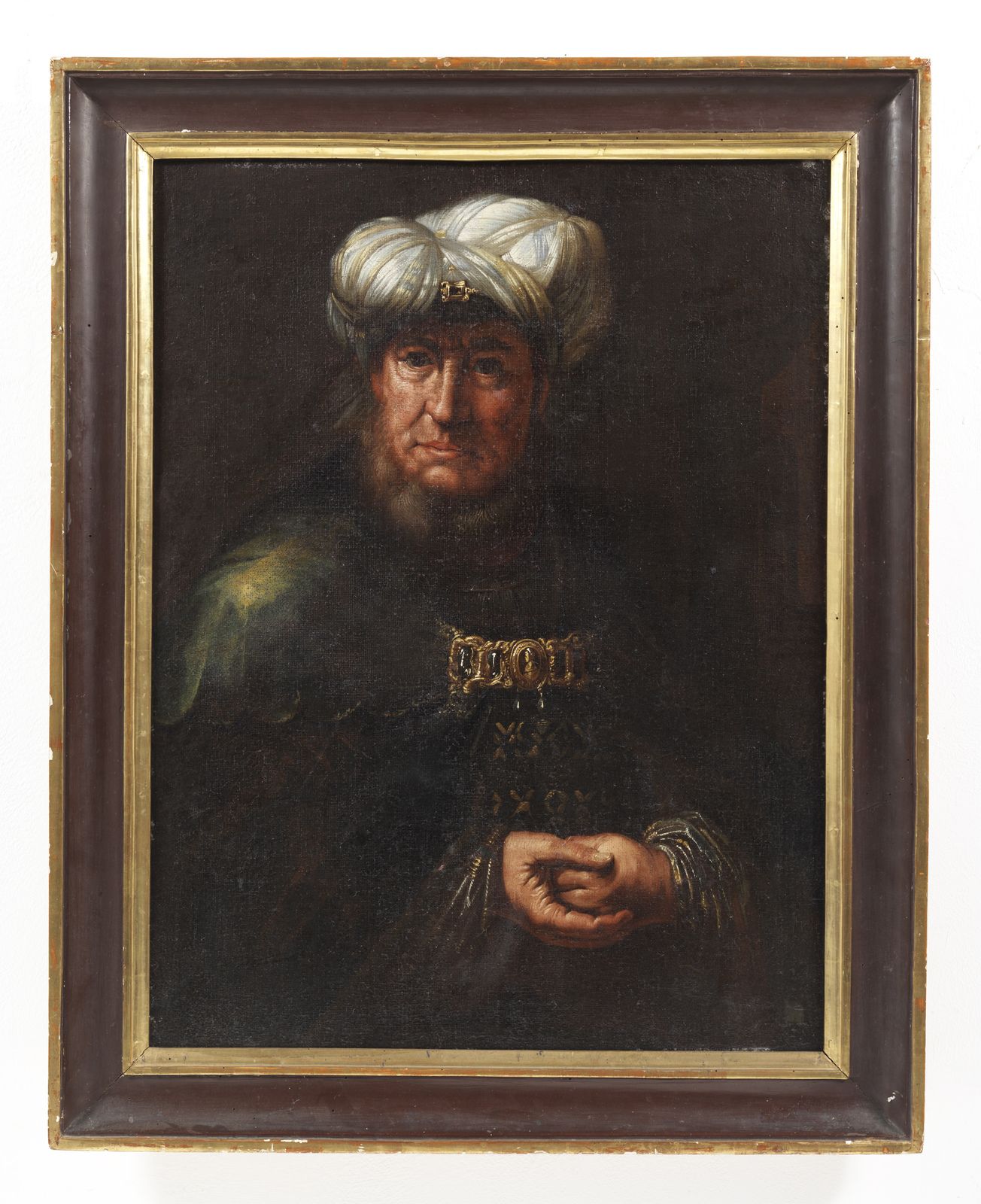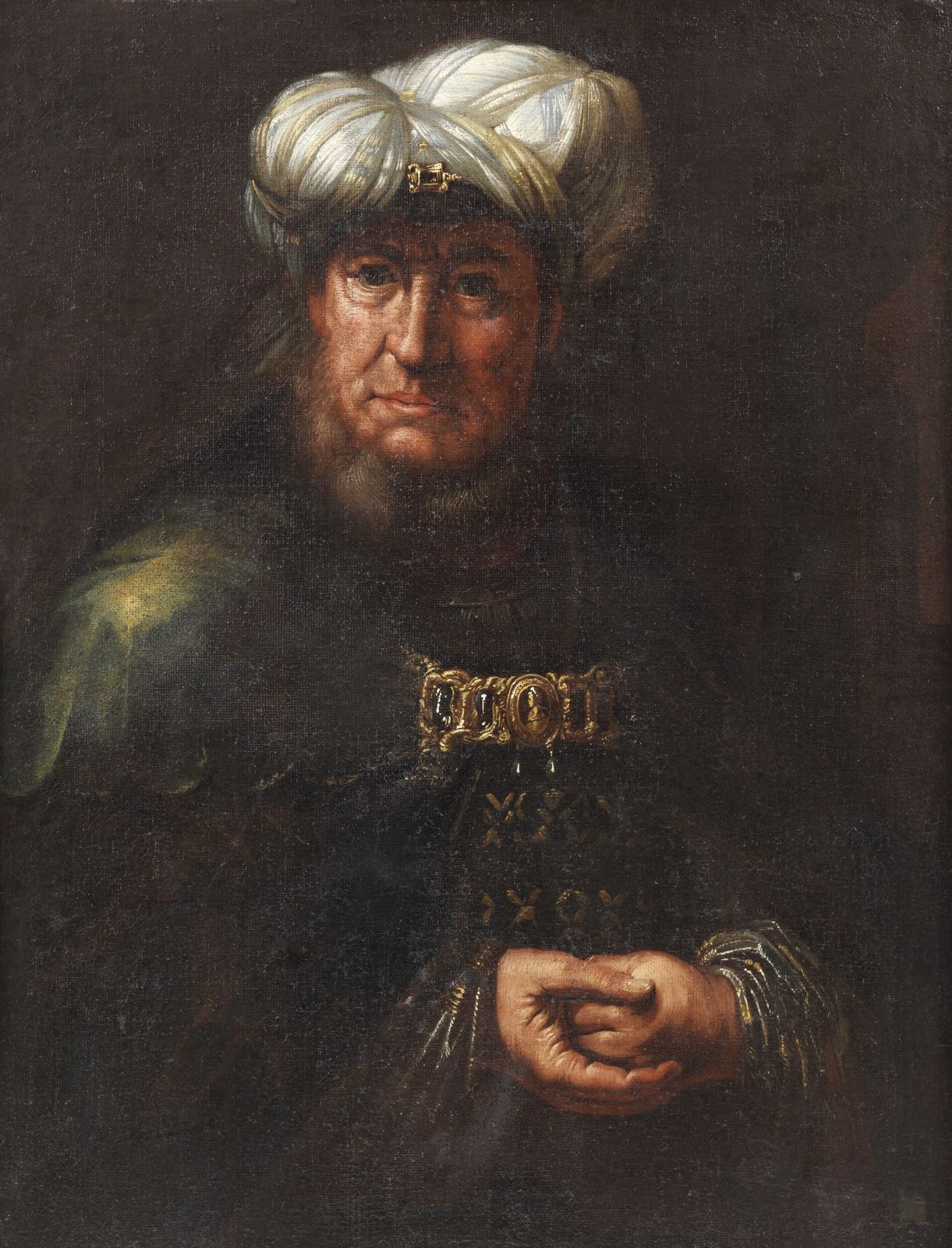 L'opera qui riprodotta è una copia della famosa tela di Rembrandt conservata presso la Collezione Devonshire a Chatsworth, Derbyshire, se ne conoscono numerose repliche eseguite da allievi e seguaci.Ozia, re di Israele, peccando di superbia viene colpito dalla lebbra per volere divino, da quel momento visse in isolamento.
